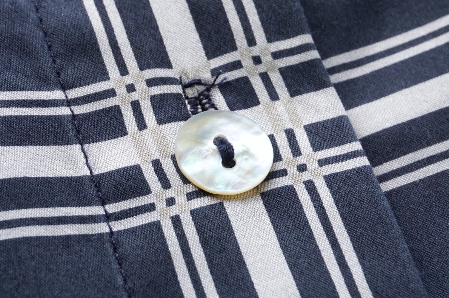 シックでアーバンな配色のチェックプリントに、天然シェルボタンが良いアクセント。