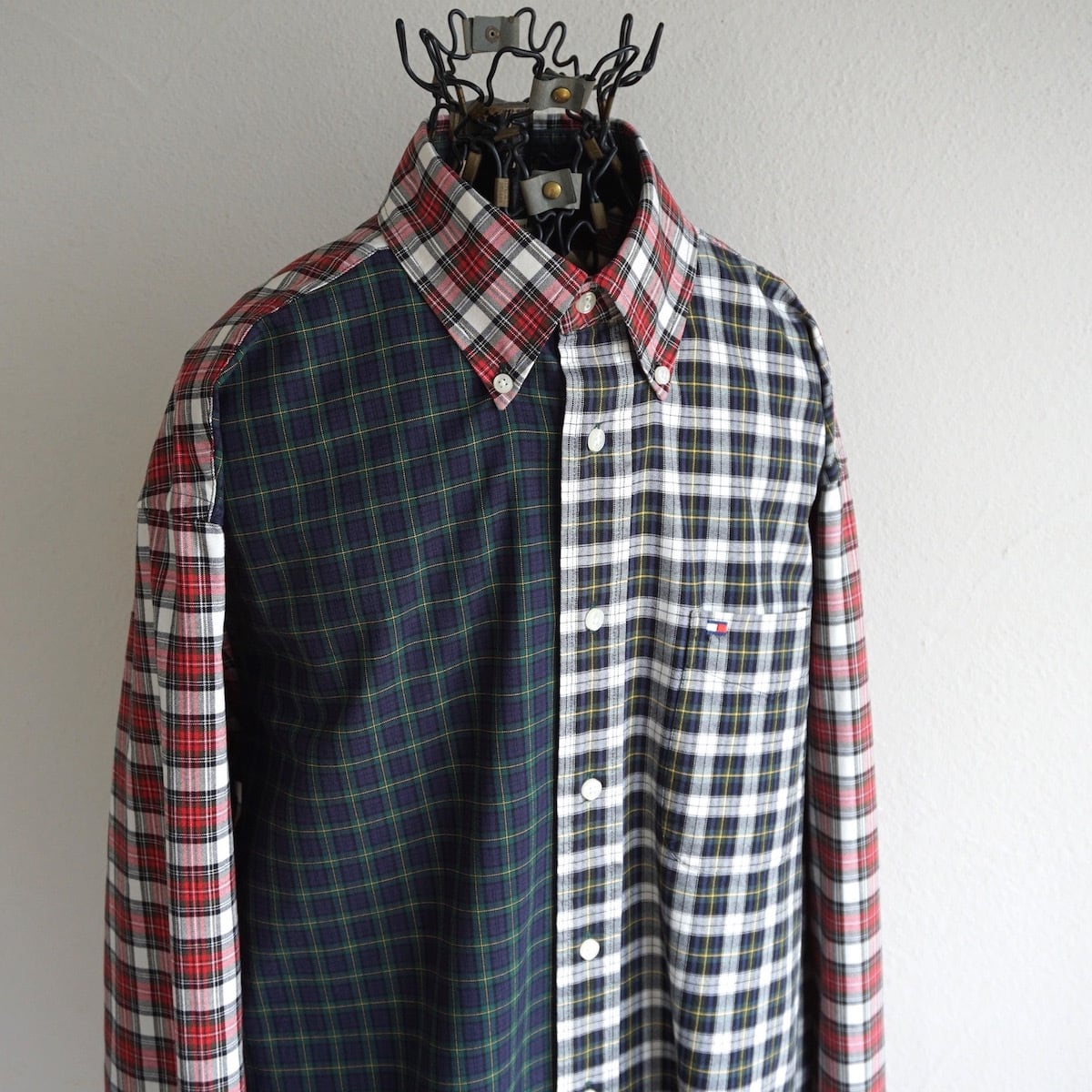 TOMMYらしいトラッドなタータンチェックがクレイジーパターンになった、L/Sボタンダウンコットンシャツ。
