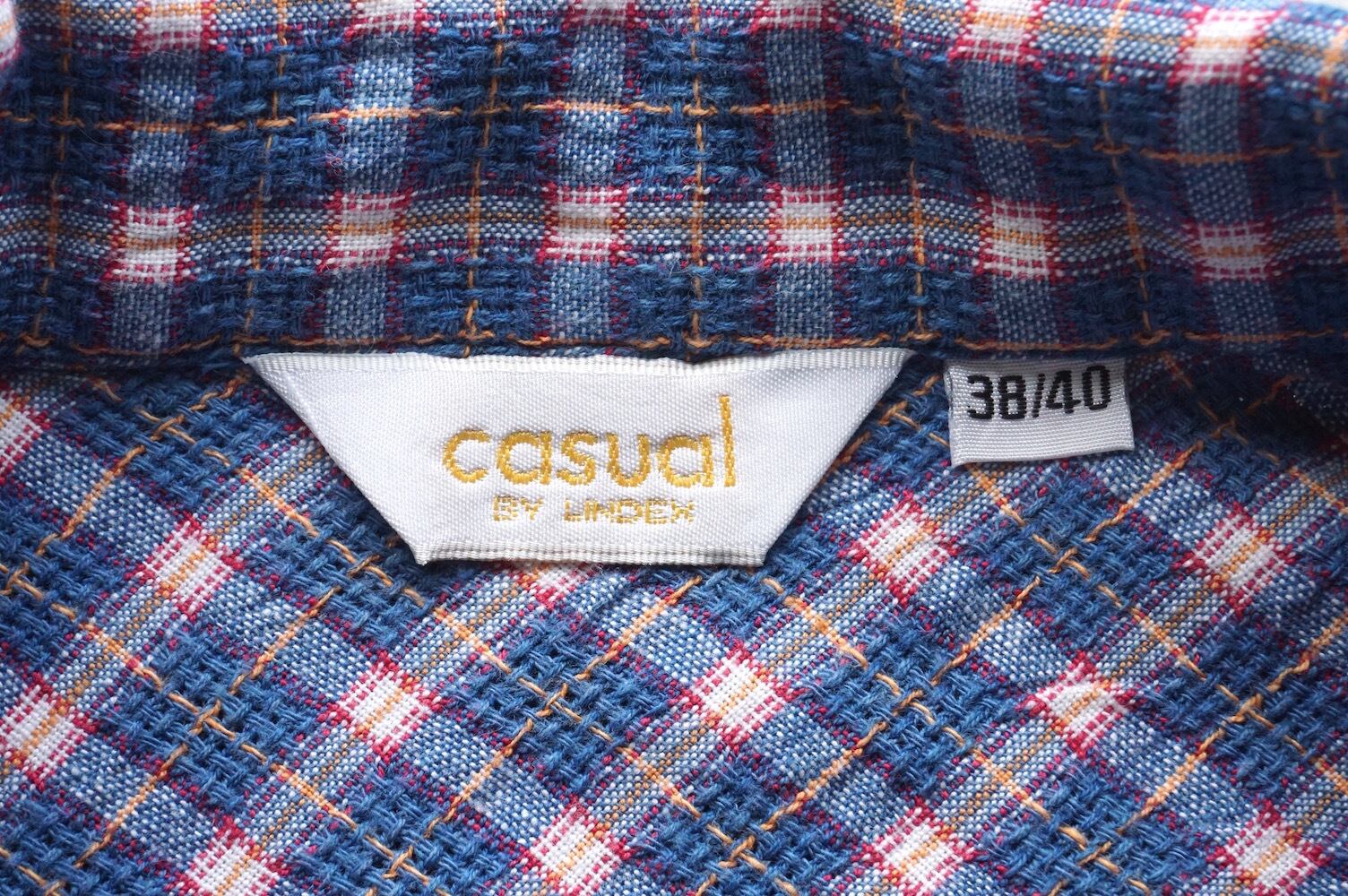1990's [casual by LINDEN] フルジップアップ シアサッカー調 L/S コットンシャツ ブルー系チェック 表記(women's 38/40) ヴィンテージ