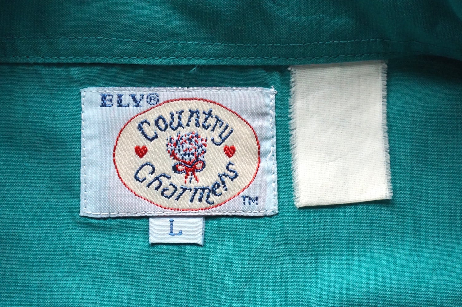 1980's〜90's [ELY] L/S ウエスタンシャツ ブラック×グリーン 表記(women's L) ロカビリー ヴィンテージ