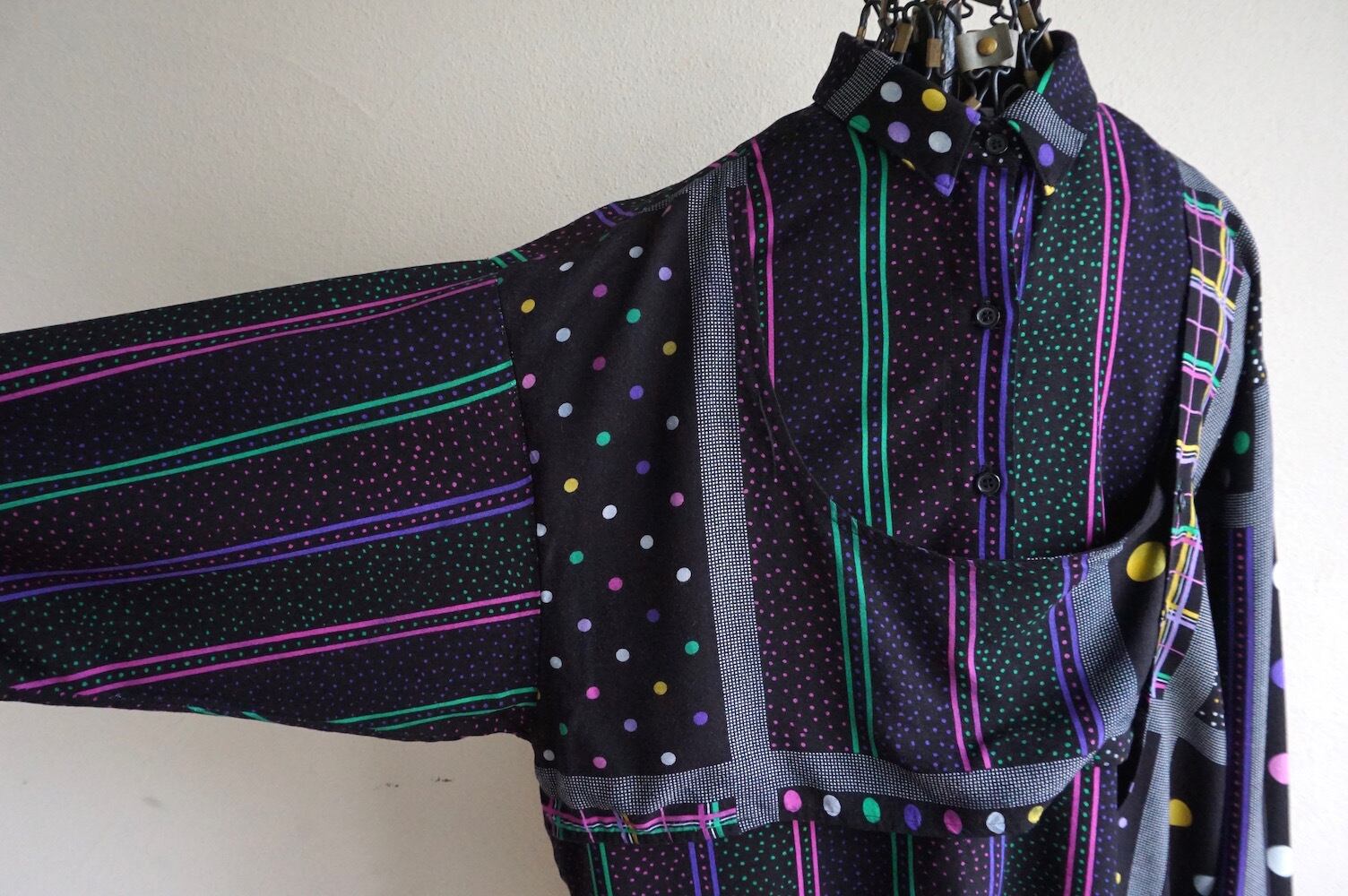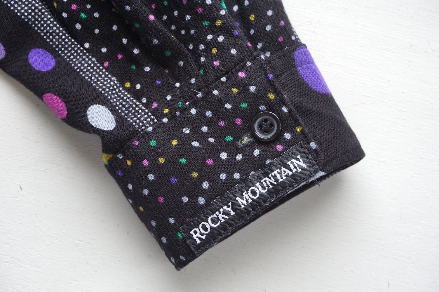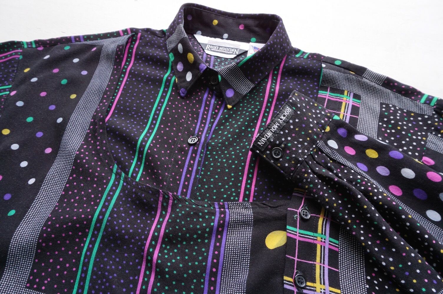 1980's〜90's USA製 [ROCKY MOUNTAIN] ネオンカラードットプリント 変形デザイン L/S レーヨンシャツ ブラック 表記(women's M) ヴィンテージ