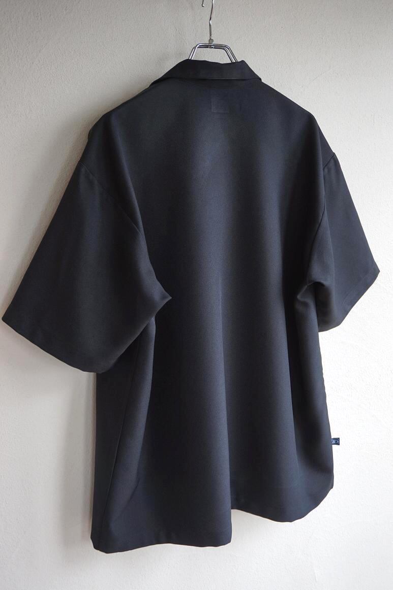 ファイヤーパターン刺繍が入った、S/SオープンカラーBOXシャツ。