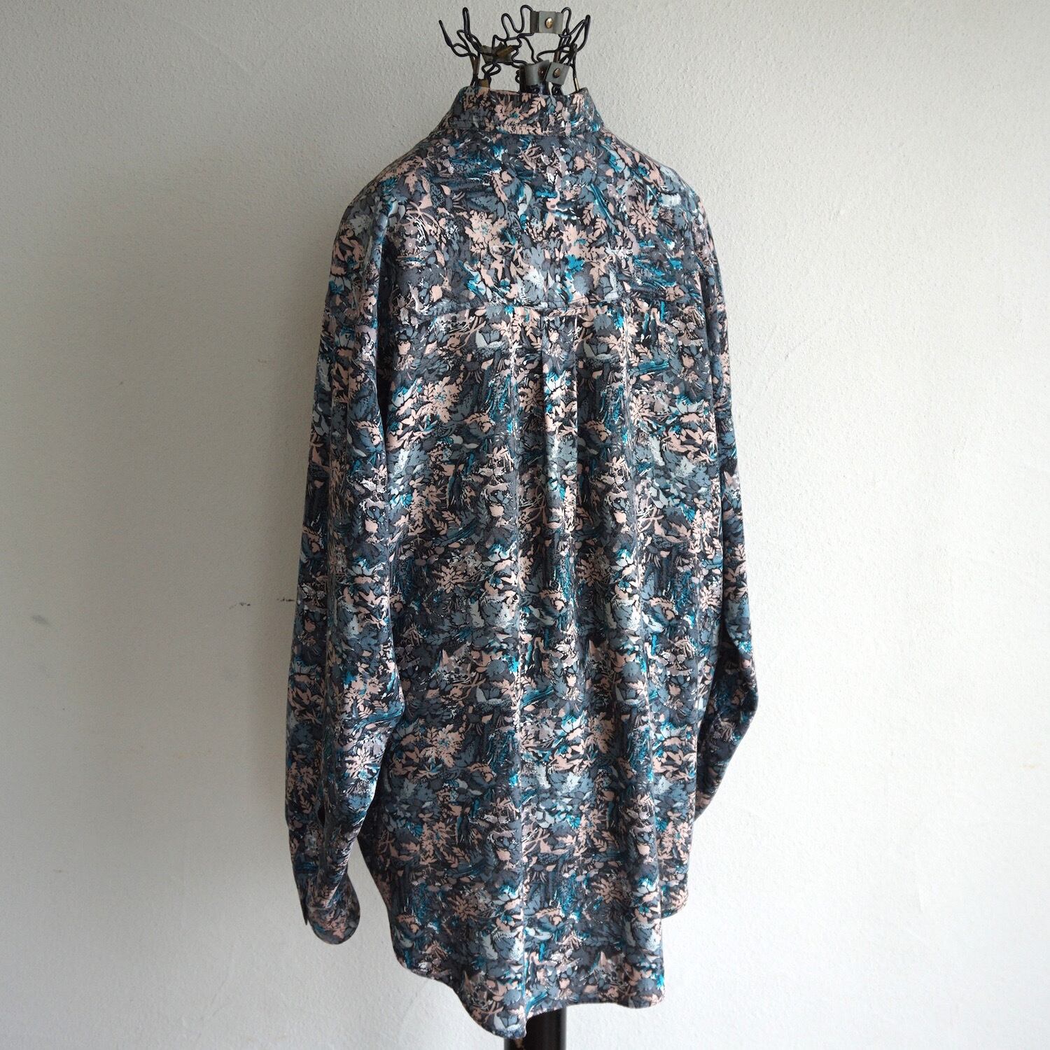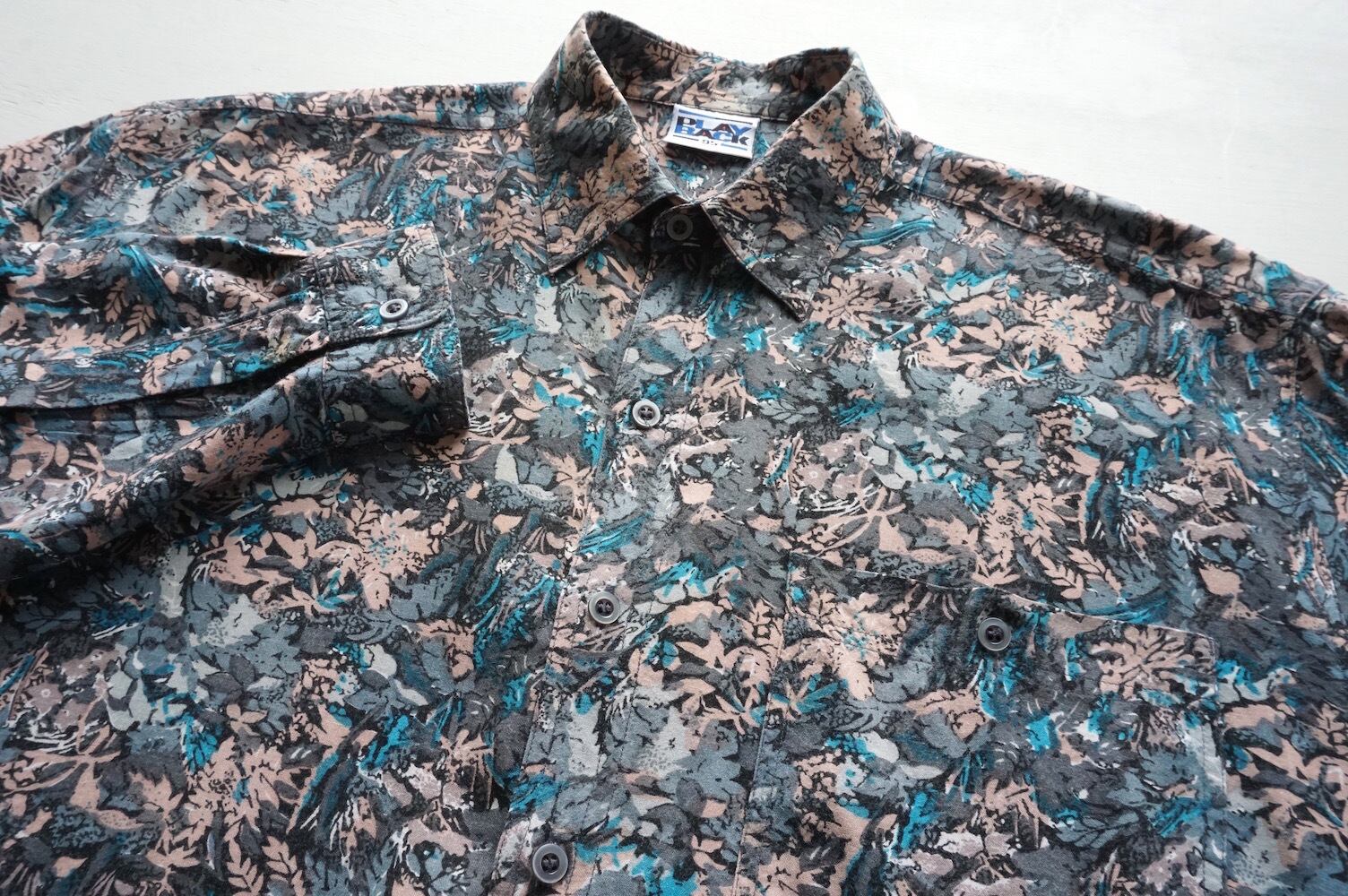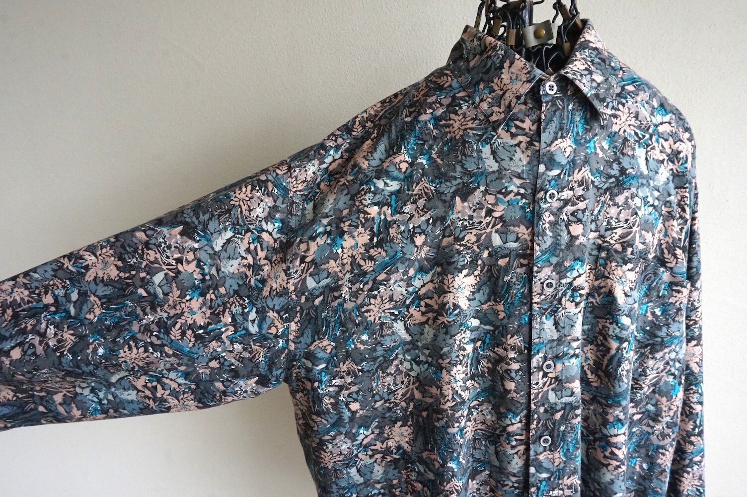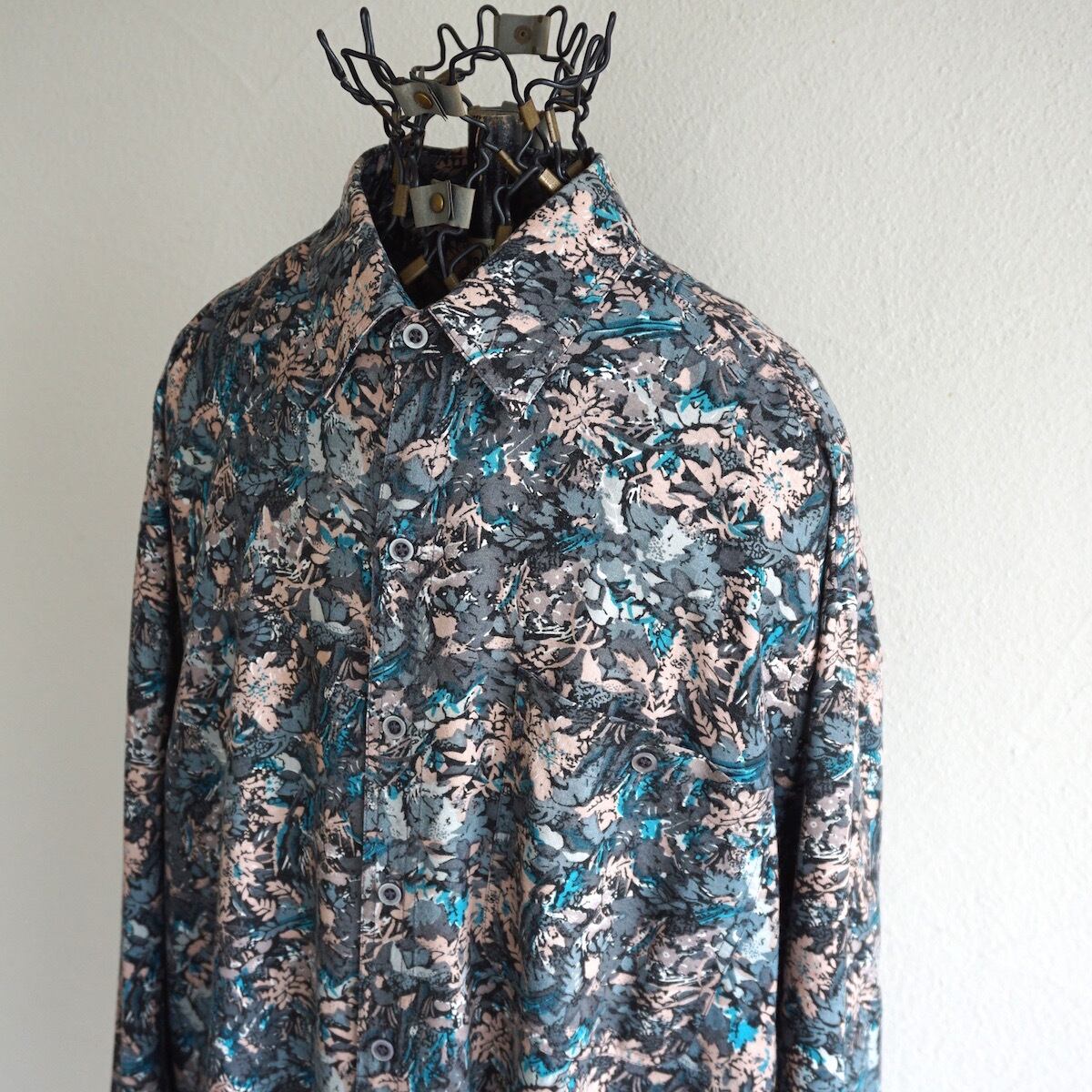 カラーリングの良いボタニカルプリントの、L/Sレーヨンシャツ。