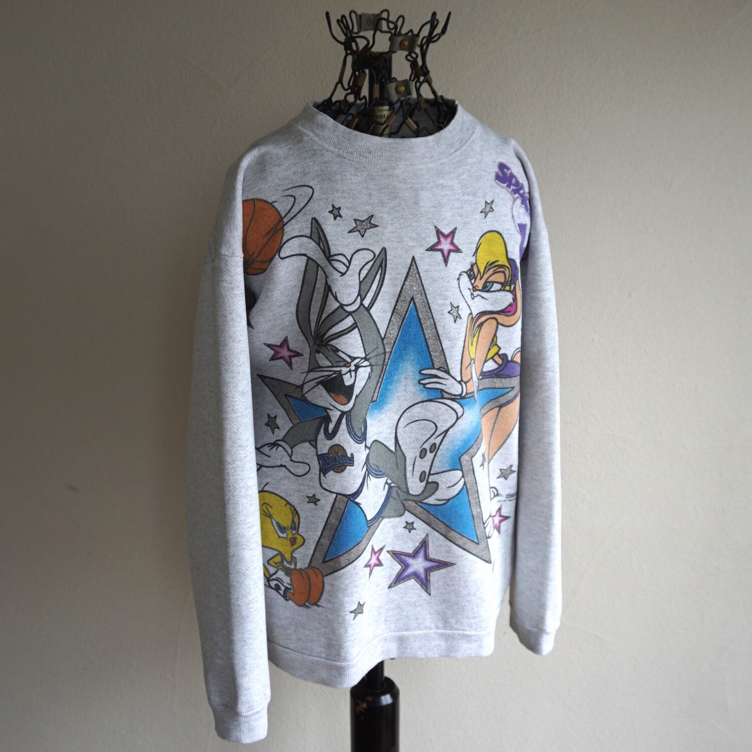1990's U.S.A./MEXICO製 [Warner Bros.] "SPACE JAM" プリントスウェット ヘザーグレー 実寸(men's XS〜S程度) スペース・ジャム Tune Squad LOONEY TUNES 1996 ヴィンテージ