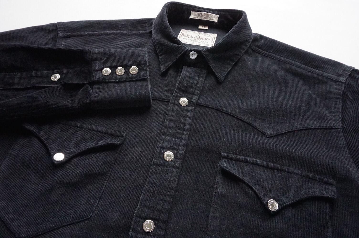1970's〜80's [Ralph Lauren] "WESTERN WEAR" 白タグ L/S コーデュロイウエスタンシャツ ブラック 実寸(men's S程度 ) ラルフローレン ヴィンテージ レア