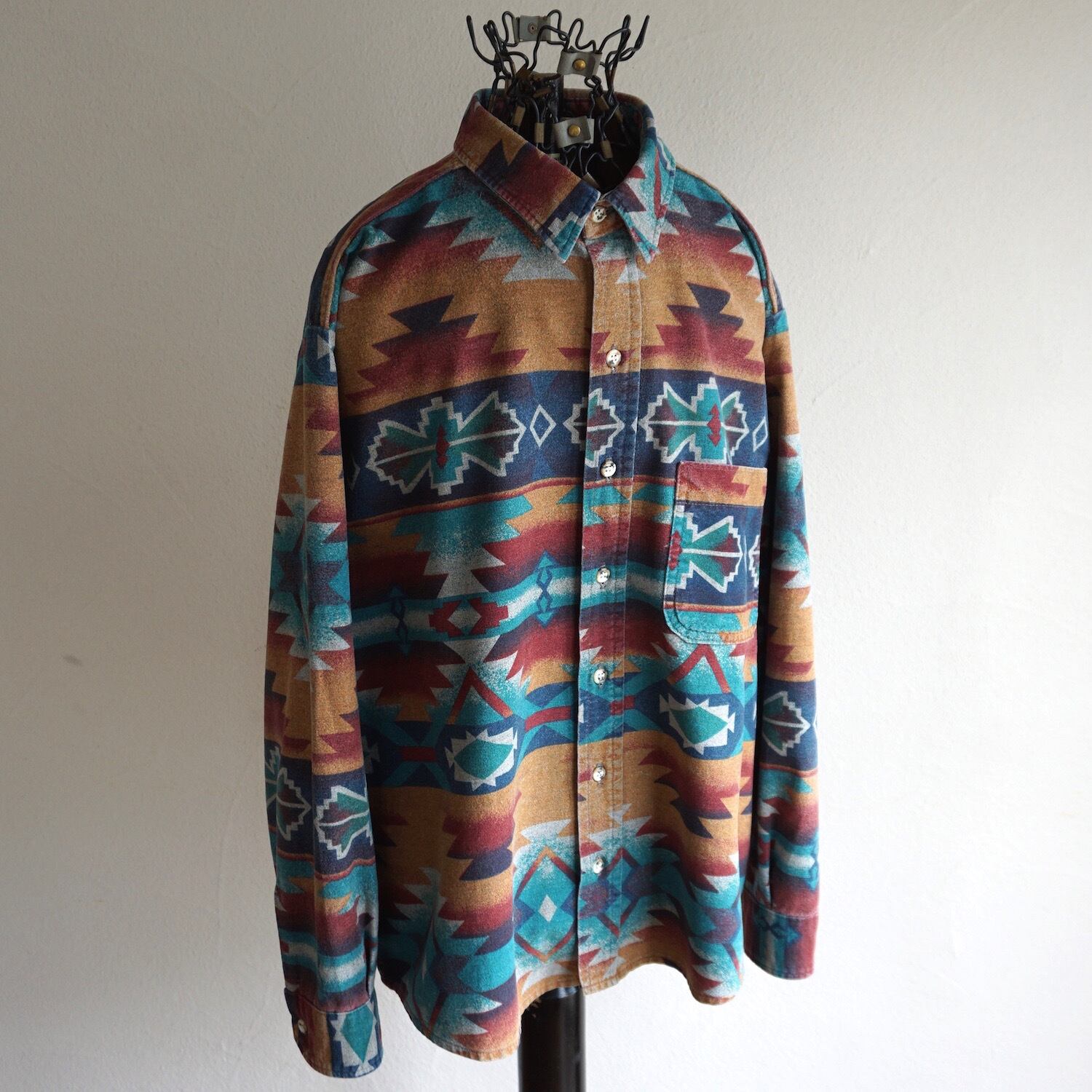 1990's [-Unknown-] ネイティブプリント コットンフランネルシャツ マルチ 実寸(men's L程度) 総柄 ヴィンテージ