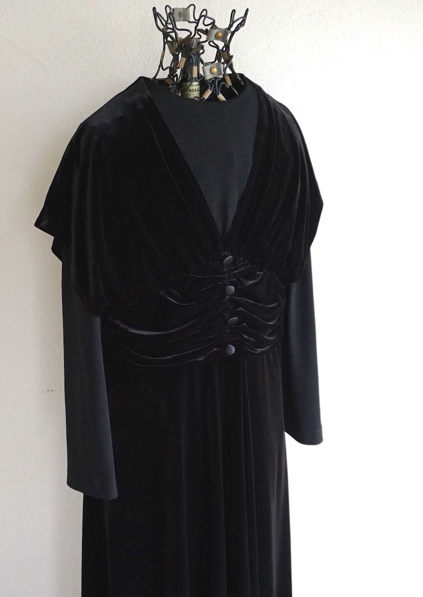 1980's〜 CANADA製 [CINDY COUTURE] レイヤードデザイン L/S ロングベロアドレス オールブラック 実寸(women's M程度) ワンピース ヴィンテージ