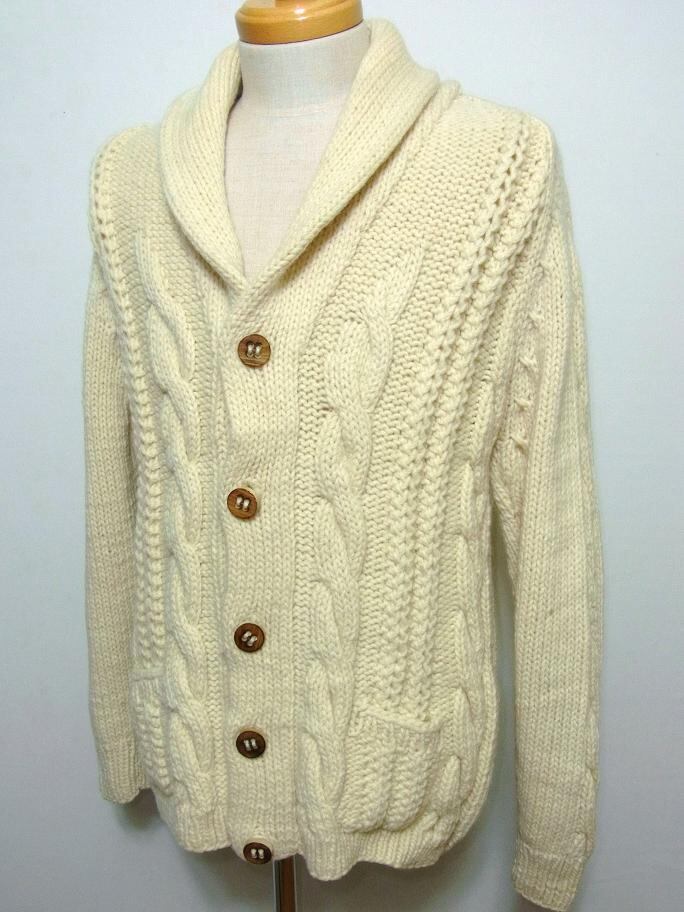 1970~80’s ショールカラー フィッシャーマンズカーディガン 生成り 実寸(M~L位)