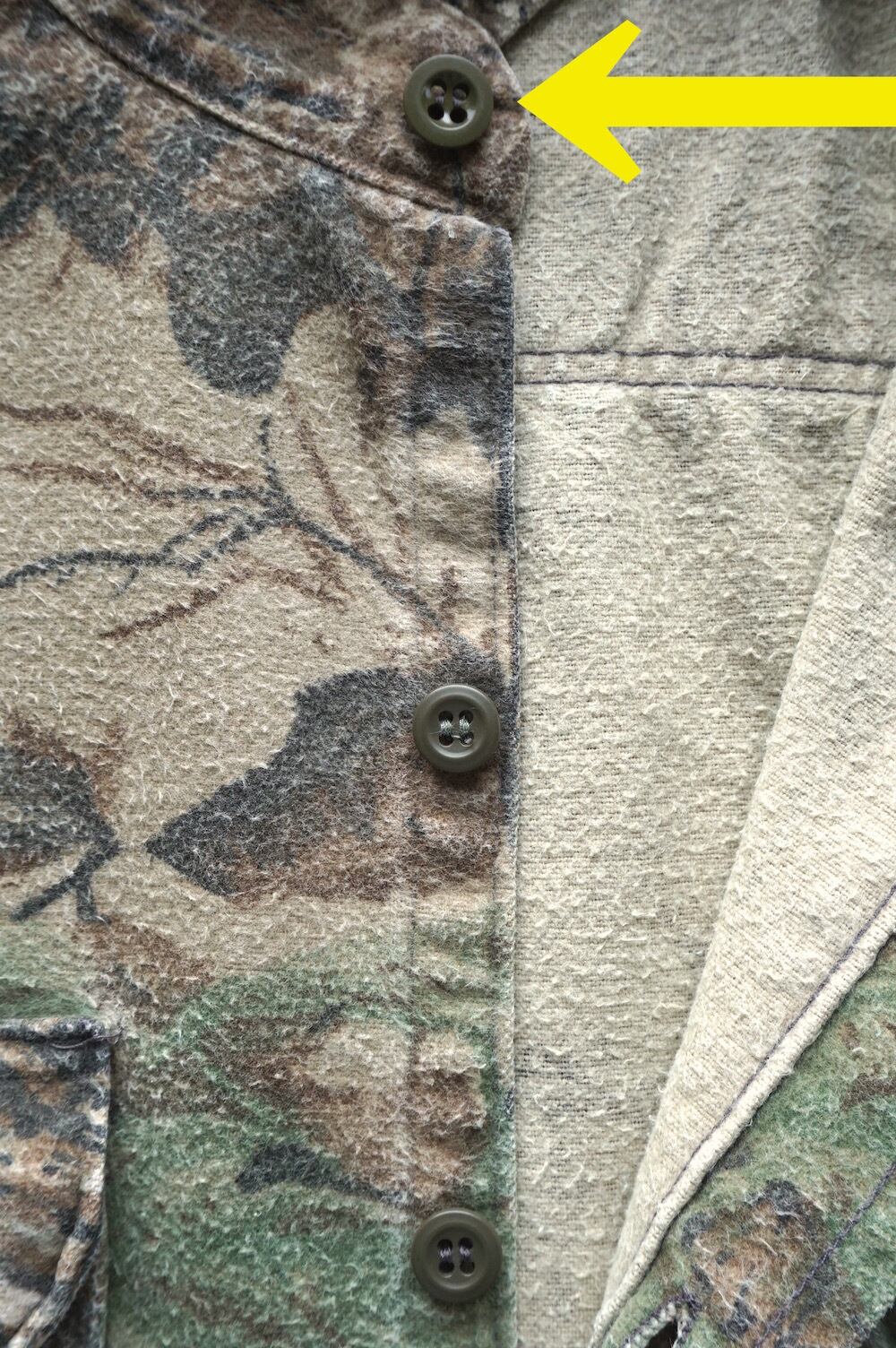 "セーム革"の様に表面を微細に起毛させた厚手のコットンフランネル生地「シャモアクロス」の、リアルツリーカモフラージュプリントシャツ。