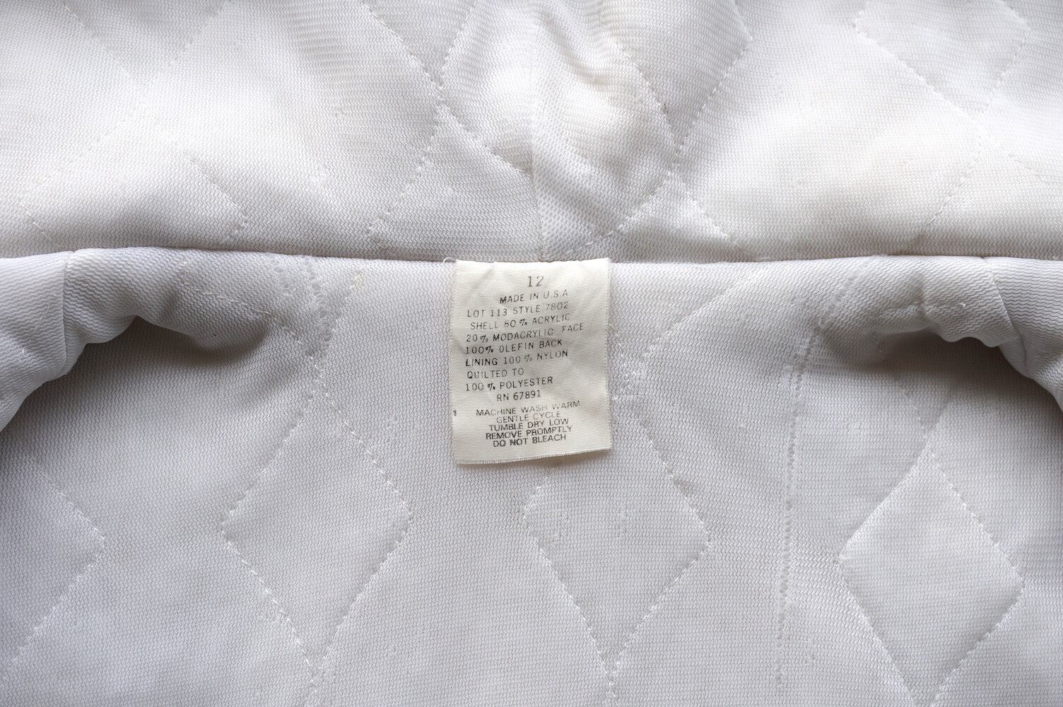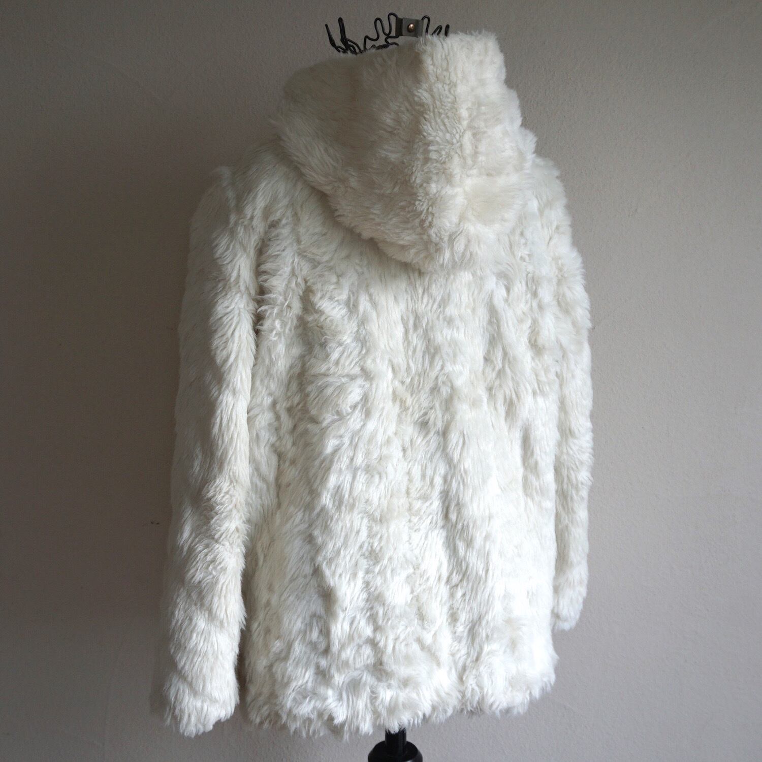 1980's USA製 フェイクファー フーデッドショートコート オフホワイト 実寸(women's M程度) フルジップ パーカ ヴィンテージ