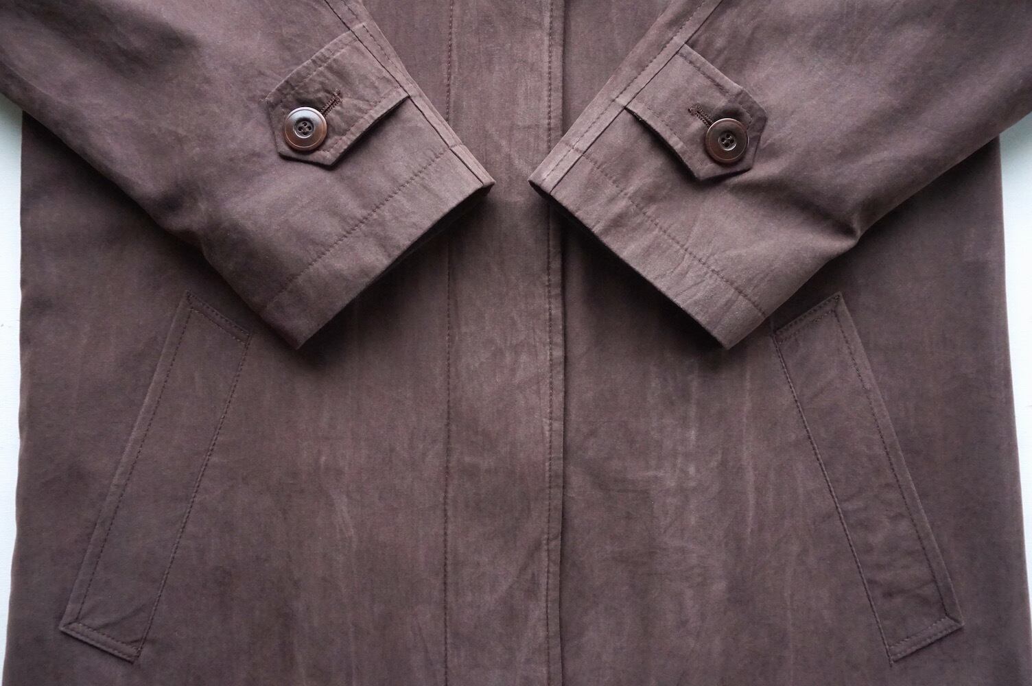 マットでしっとりしたスエードタッチな生地感の、ハーフバルマカーン(ステンカラー)コート。