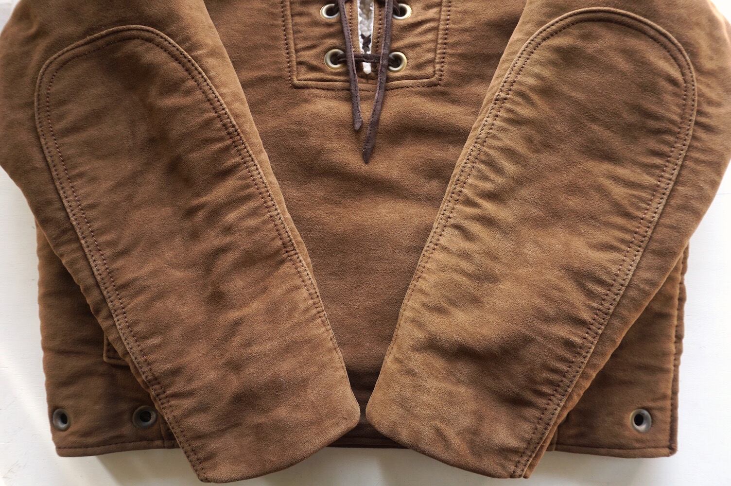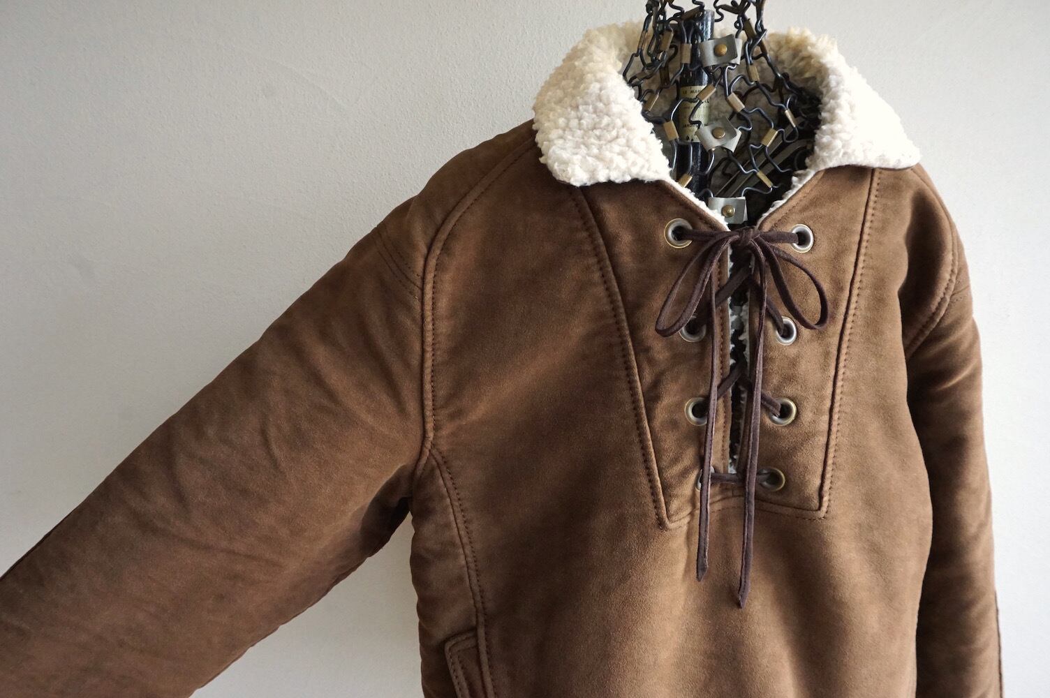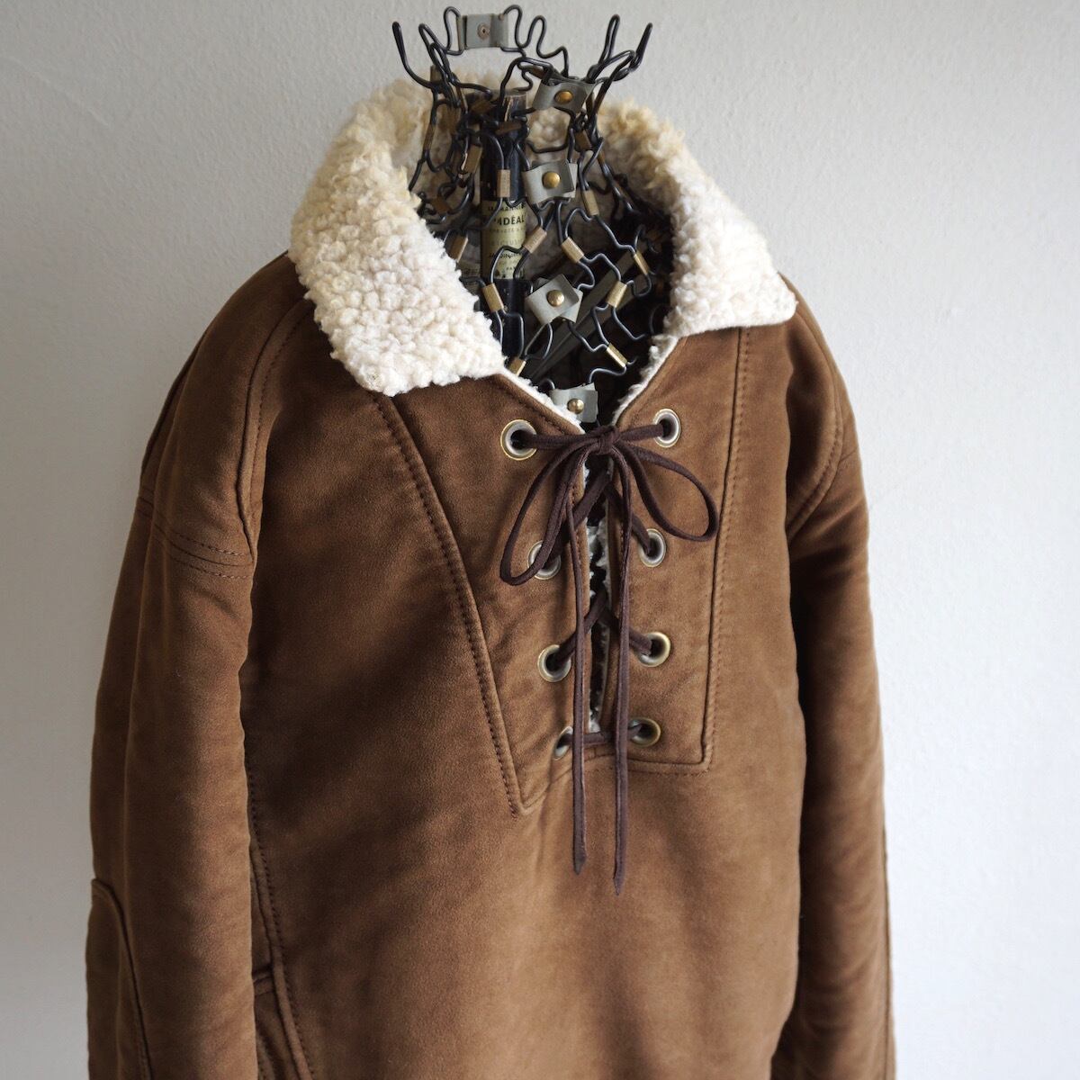 質感の良いフェイクスエードコットンにボアライニングで暖かい、レースアッププルオーバー。