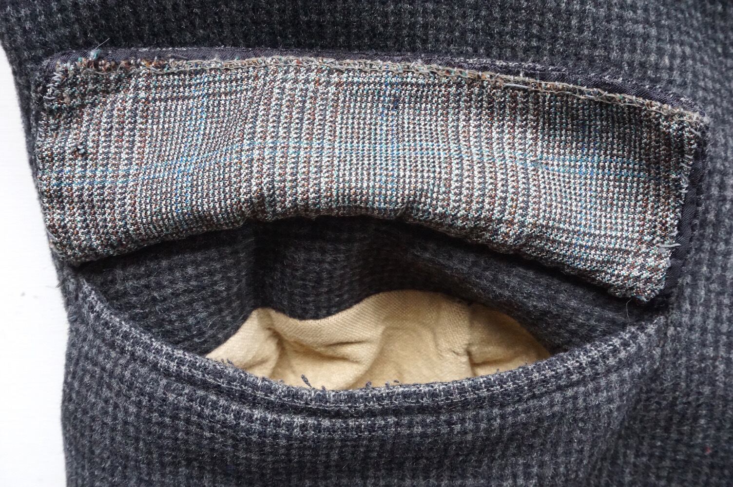 【コンディション】USED感・襟や袖口などの縁にウール擦れ・細かいウール抜けスポット・ポケットフラップ裏とスレーキに小キズ/小穴・右袖先と背面腰にミシンによる小リペア・ライニングに薄シミ/擦れダメージ/ミシンリペアはありますが、その他大きなダメージはありません。