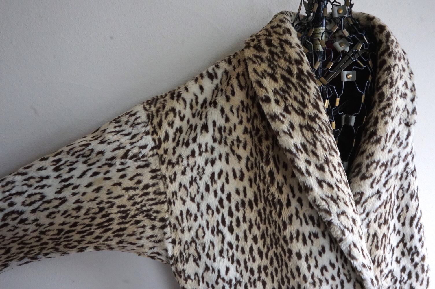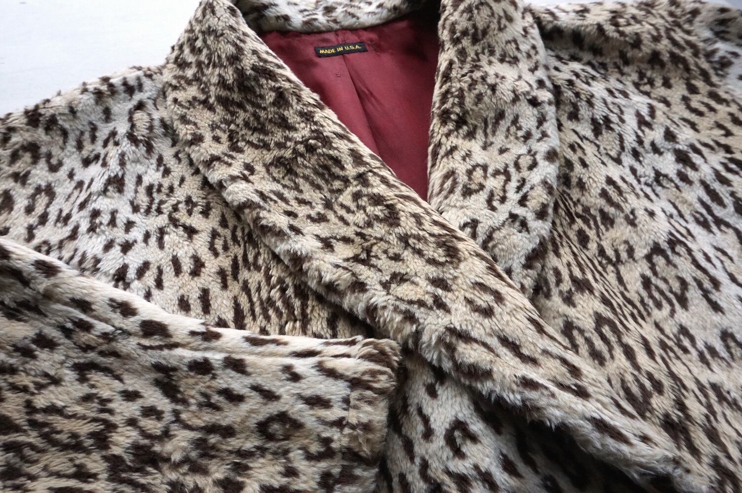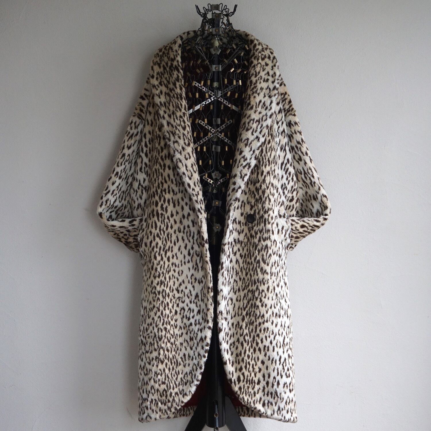 1970's〜 USA製 レオパードパターン ショールカラー&モーニングカット ロングフェイクファーコート 実寸(women's XL程度) ヒョウ柄 ヴィンテージ