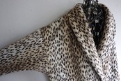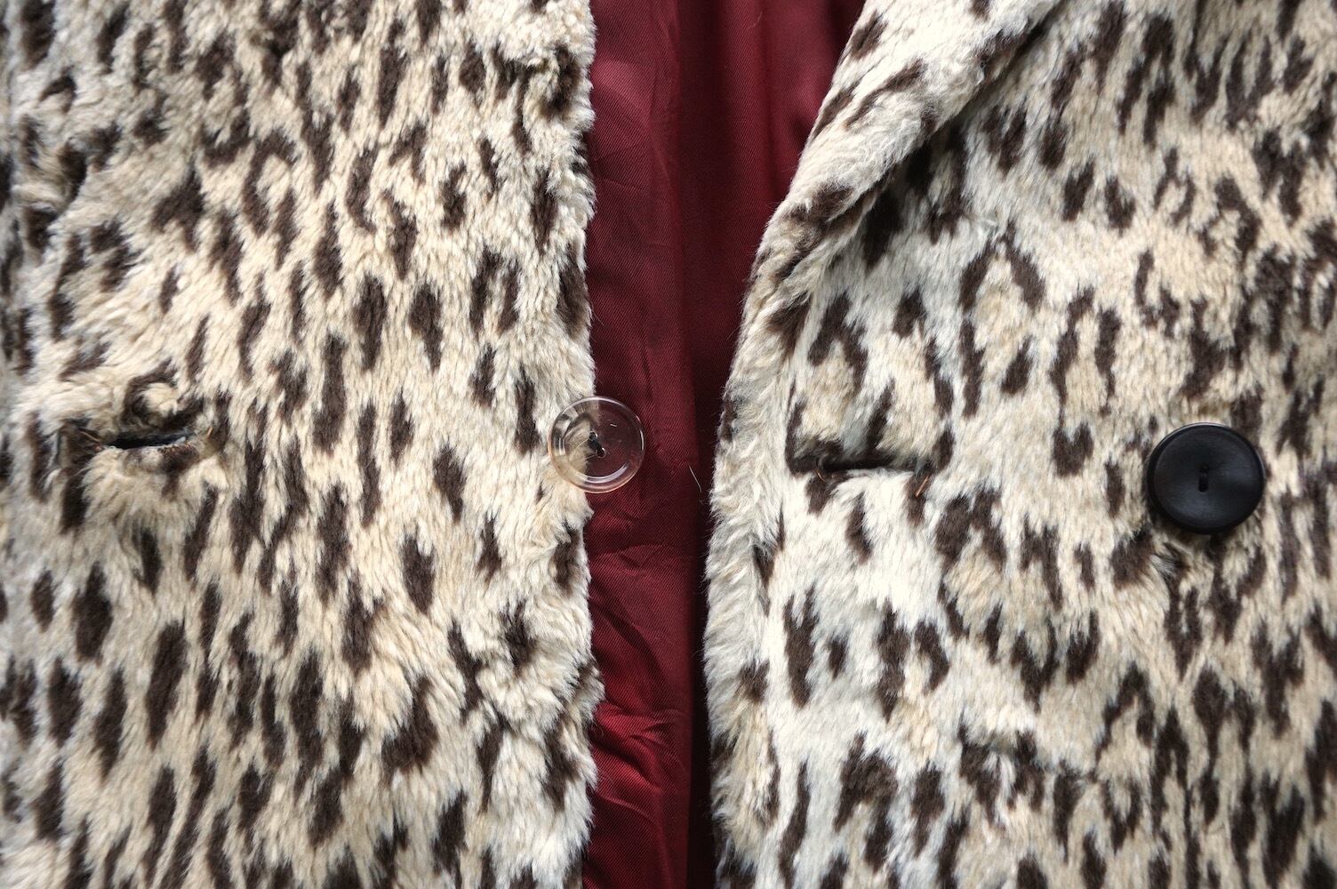 目を惹くレオパードパターンの、ロングフェイクファーコート。