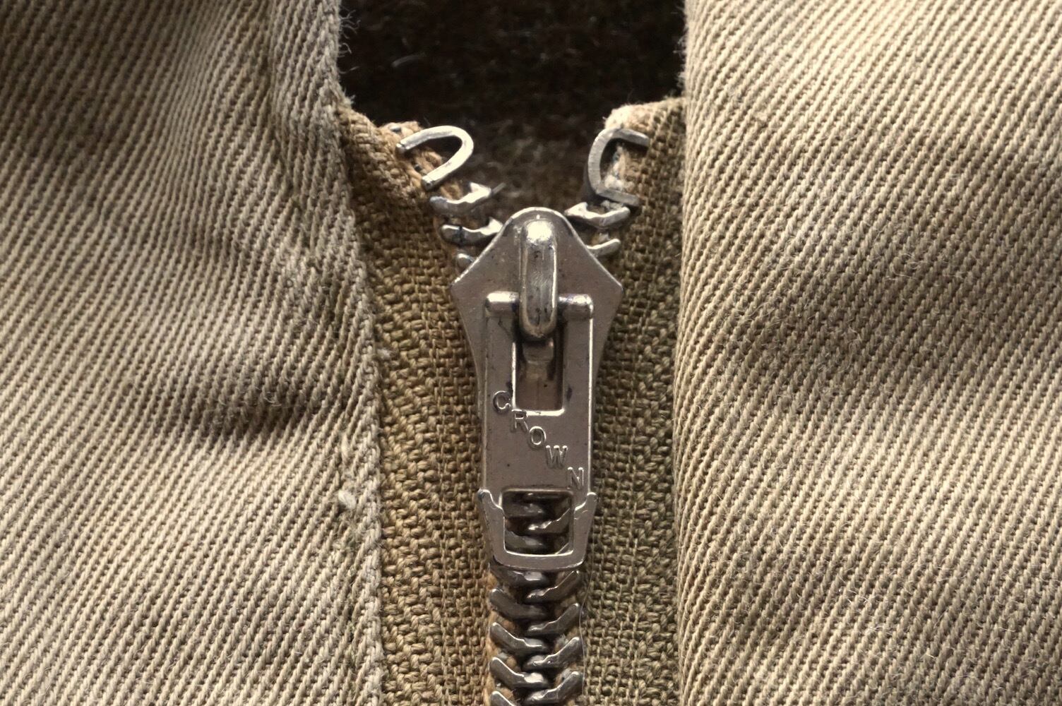 襟のチンストラップ、コの字留め"CROWN"ジッパー、ボタンも全て揃ったグッドコンディション。