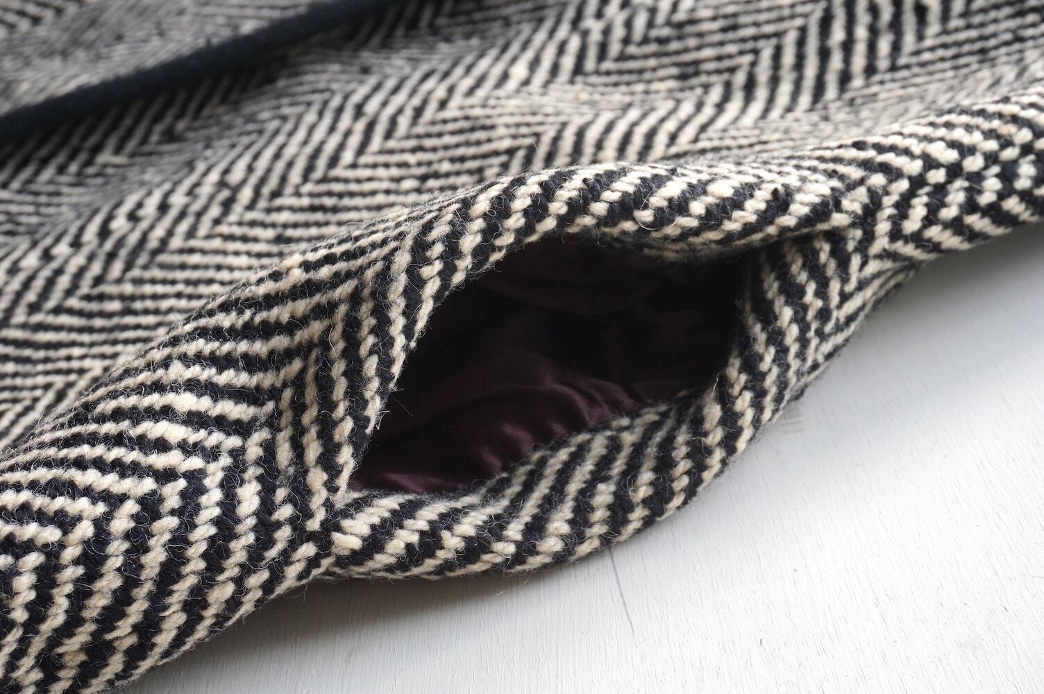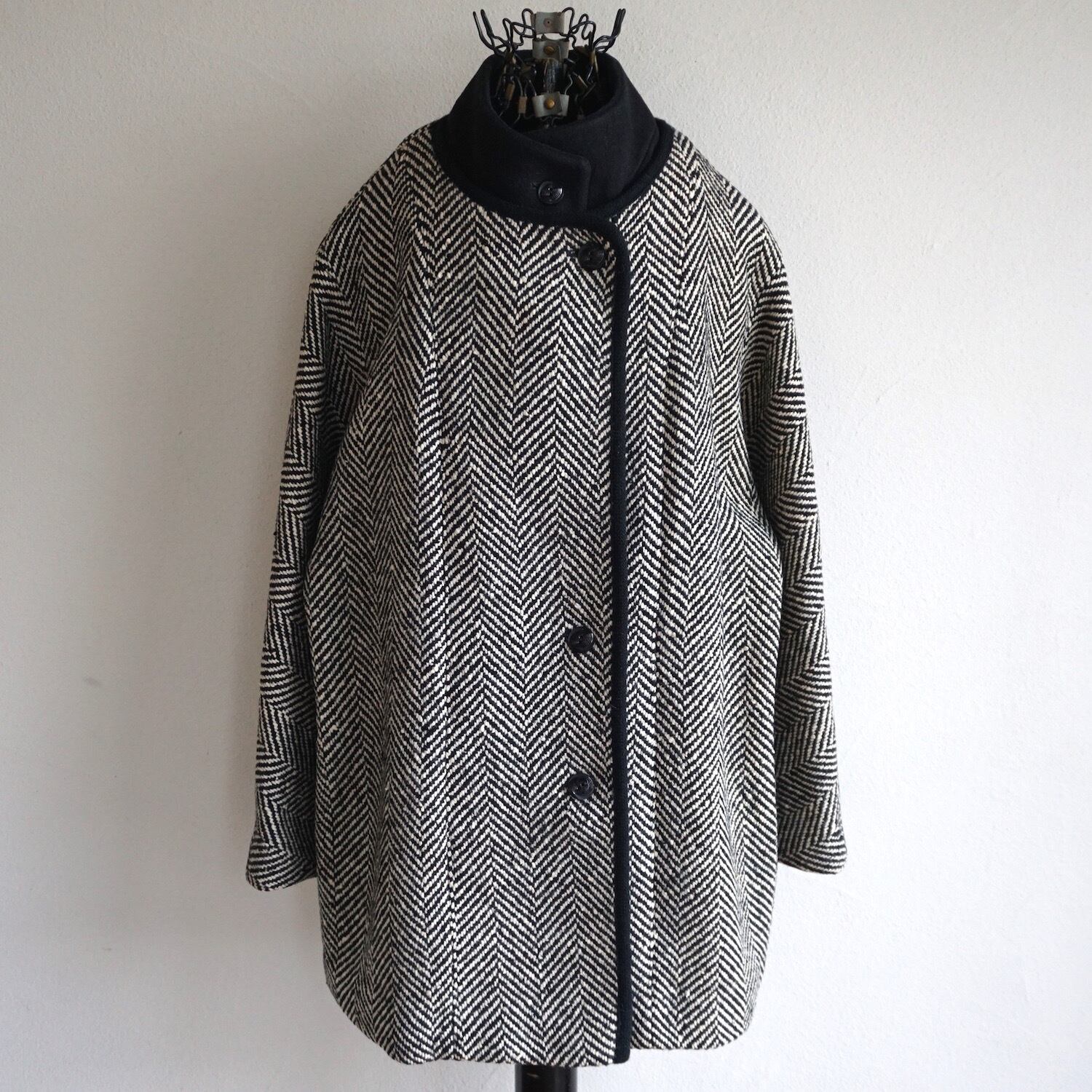 1960's〜70's USA製 [Country Pacer] レイヤードデザイン メルトン&ツイードハーフコート ブラック×ホワイト 実寸(women's M〜L程度) ヘリンボーン モノトーン モード ILGWU UNION MADE ヴィンテージ