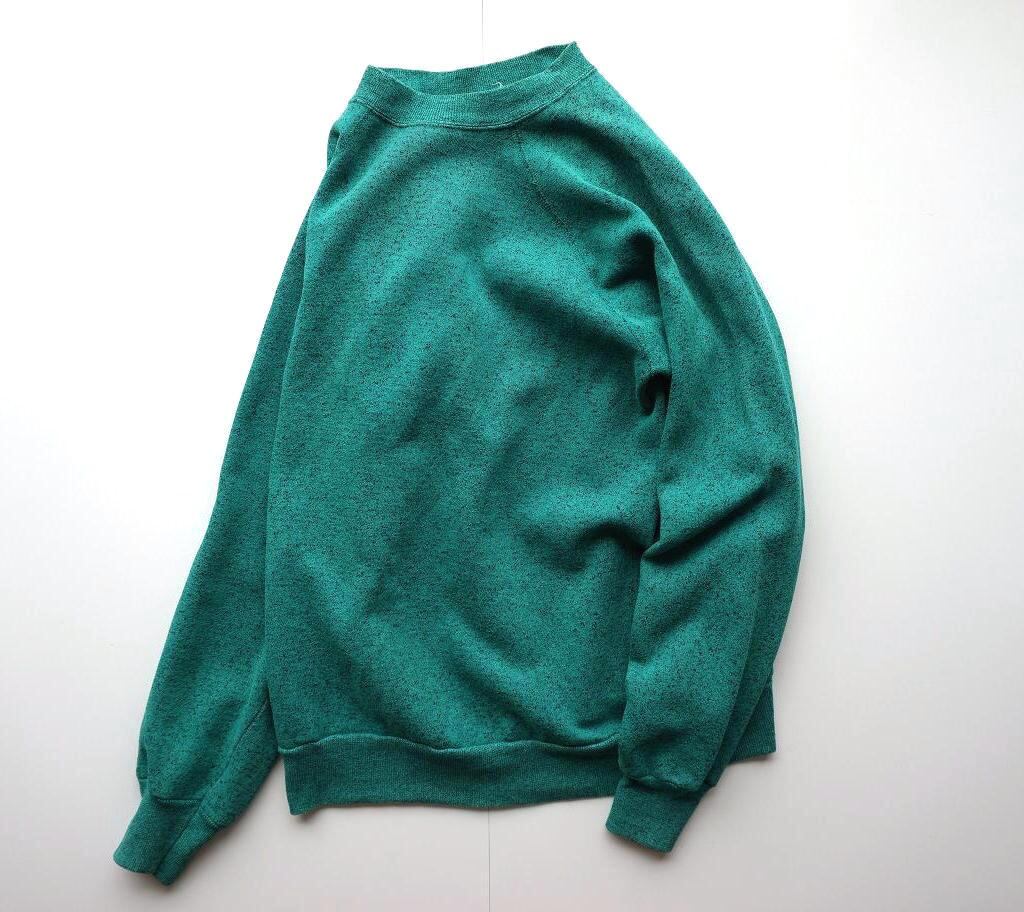 1980’s USA製 [Pannill] "ごま塩" ラグランスウェット 無地 グリーン×ブラック 表記(LARGE)