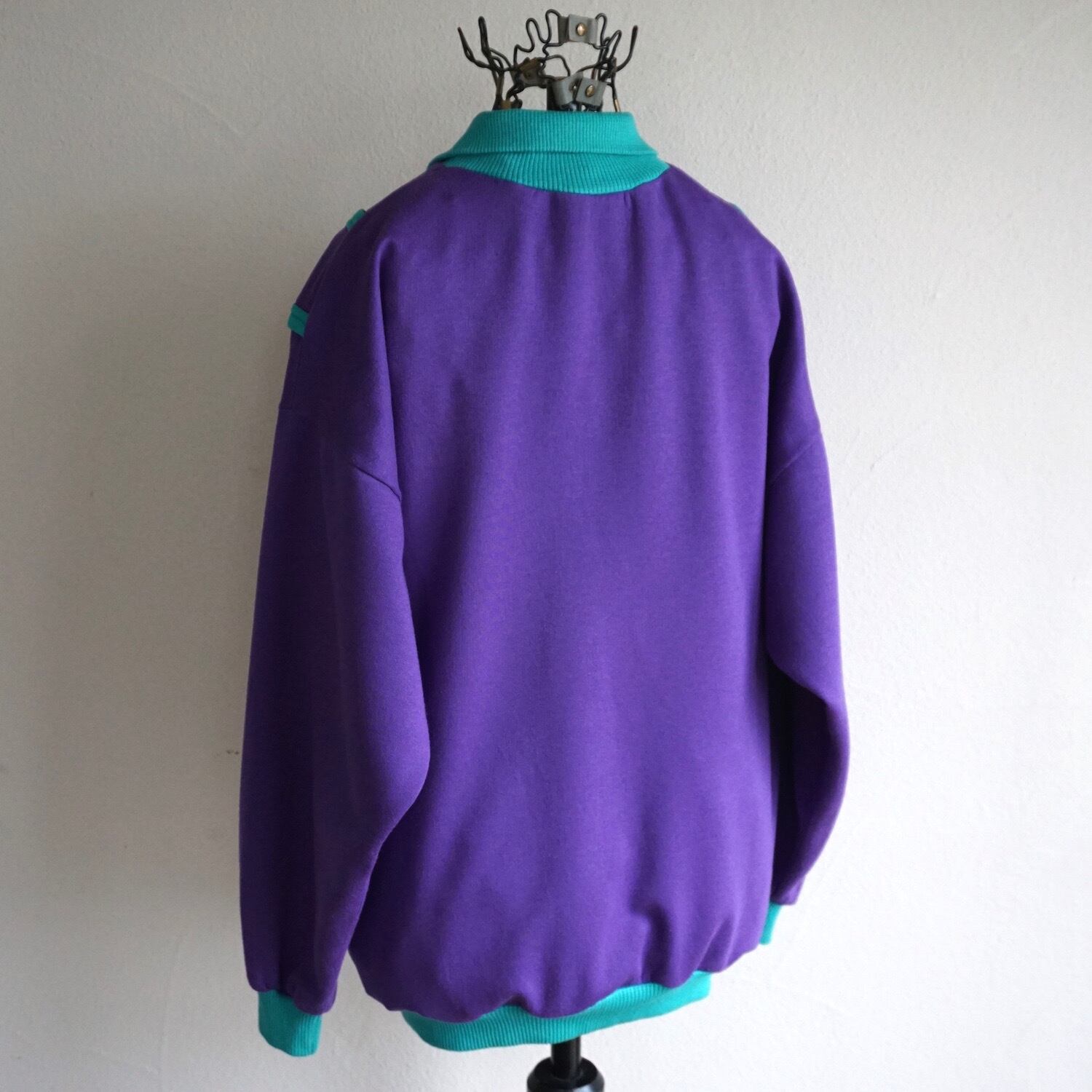 1980's FRANCE製 [Decibel] カラードスウェット パープル×グリーン 実寸(men's S〜M程度) フランス ヨーロッパ ヴィンテージ