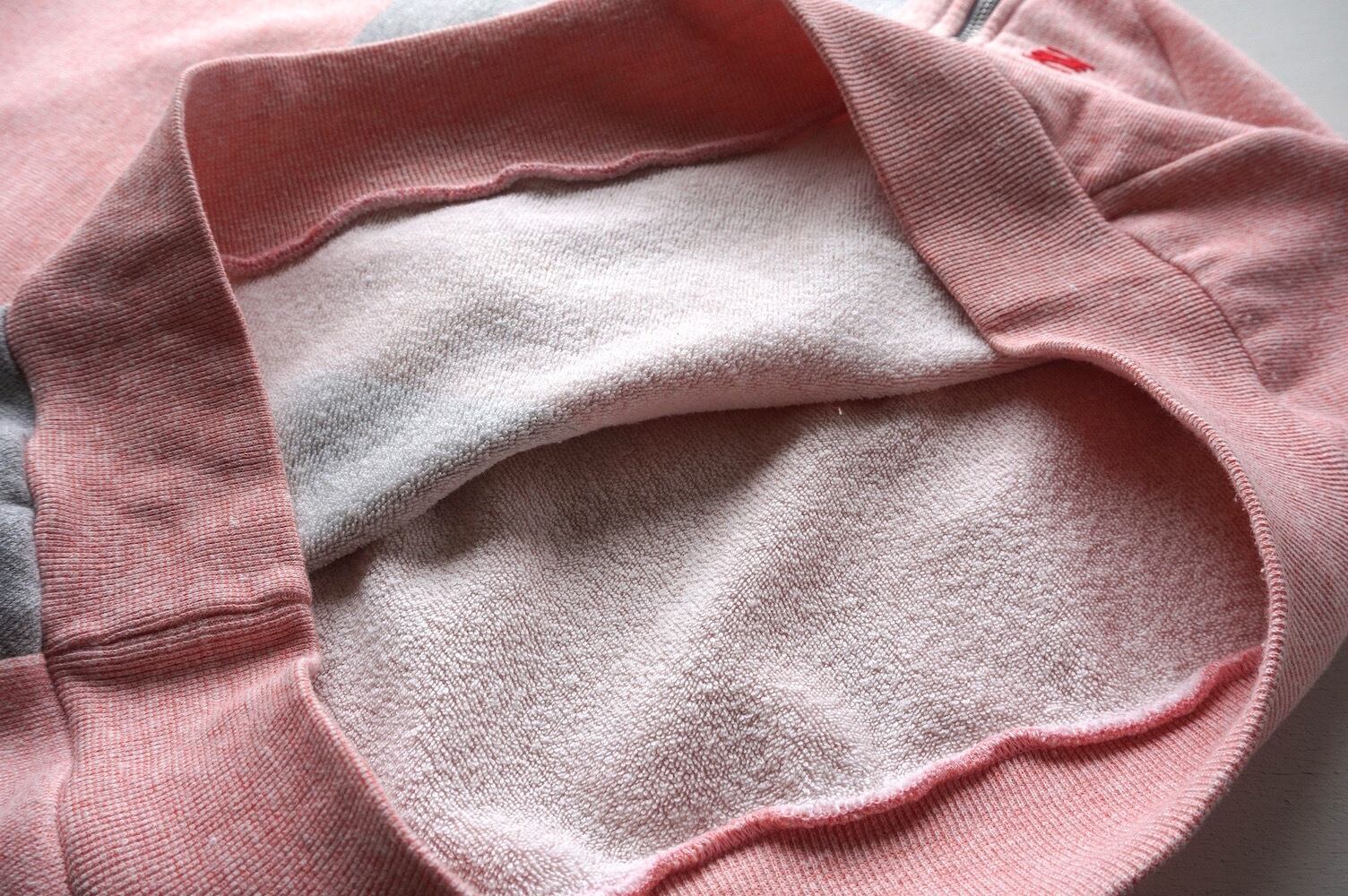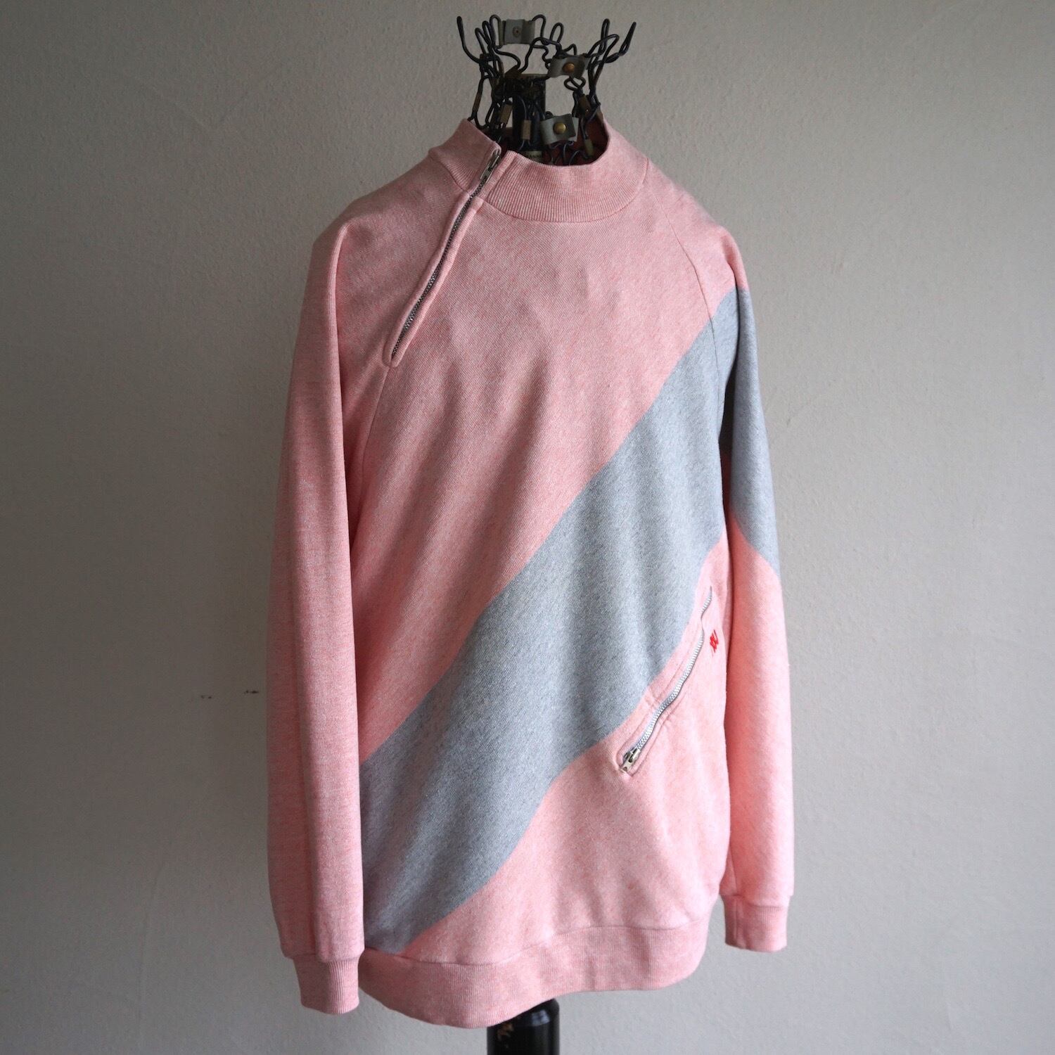 1980's [DOROTENNIS] ジップ付モックネック ラグランスウェット コーラルピンク×グレー 実寸(women's M程度) フランス ヨーロッパ ヴィンテージ