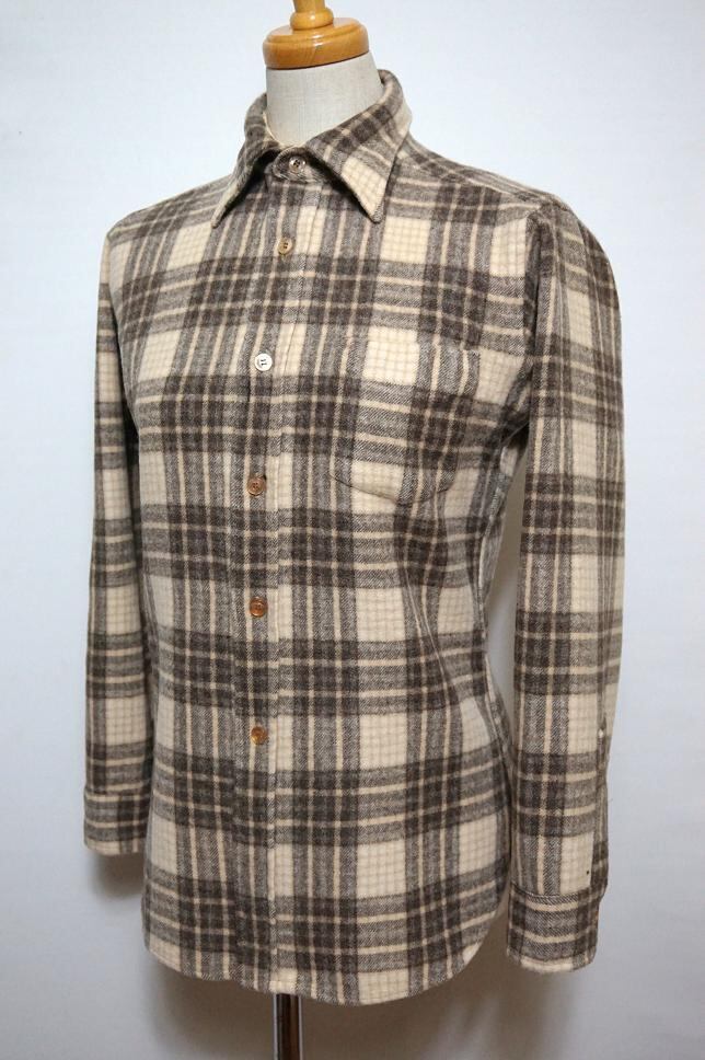 1970’s PENDLETON ウィメンズサイズ ラウンド型ウールシャツ ベージュ×ブラウン 実寸(XXS位) ペンドルトン