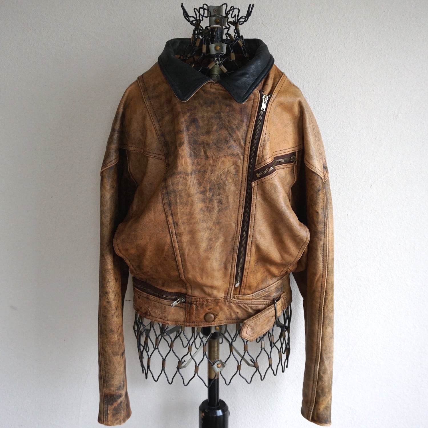 80'sらしいドルマン&ショートなシルエットがファッショナブルな、ダブルブレストのレザーライダースジャケット。