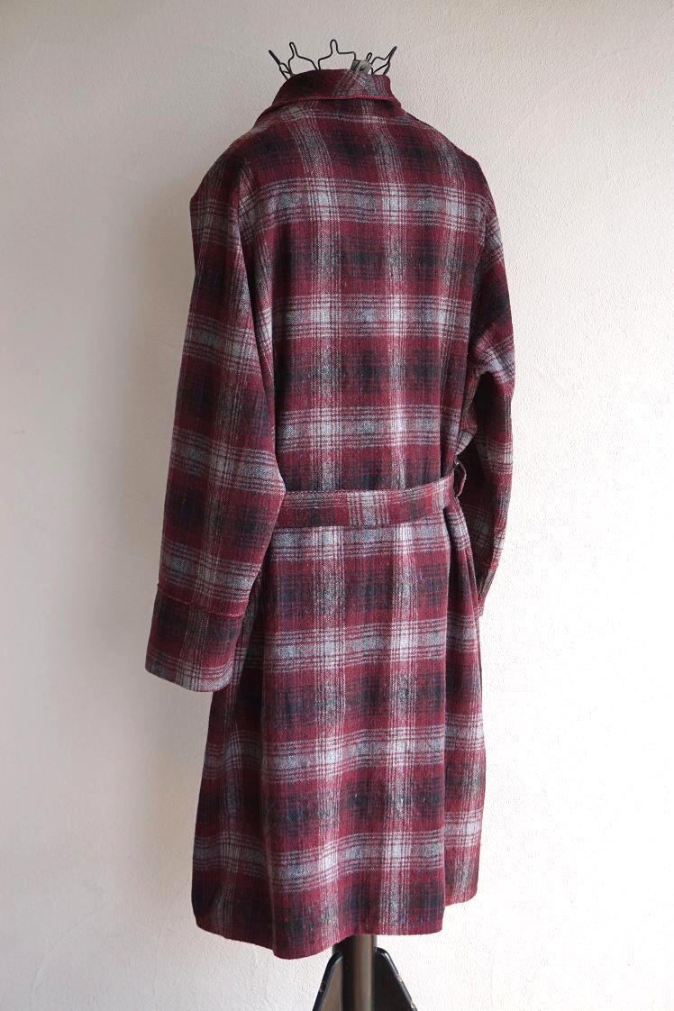 1970’s ENGLAND製 オンブレーチェック ショールカラー ウールガウン 実寸(L位)