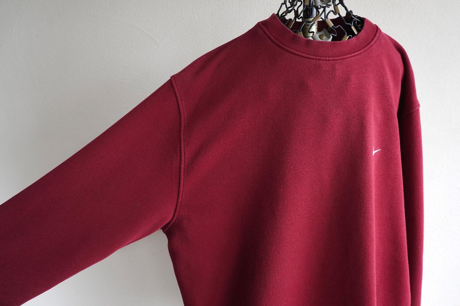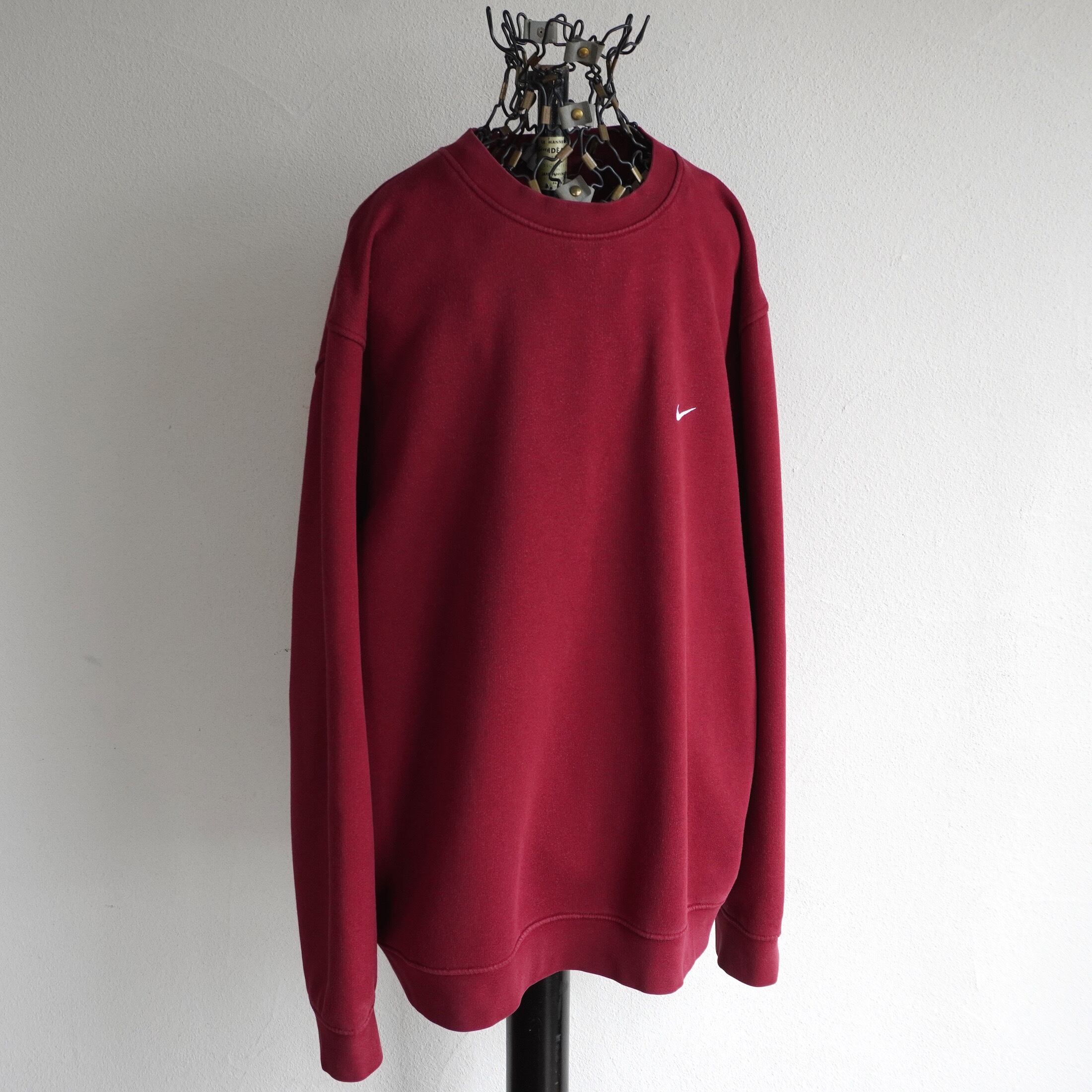 2000's [NIKE] ソロSWOOSHロゴ刺繍 クルーネックスウェット マルーン 表記(men's L) ワンポイント ナイキ Y2K ヴィンテージ