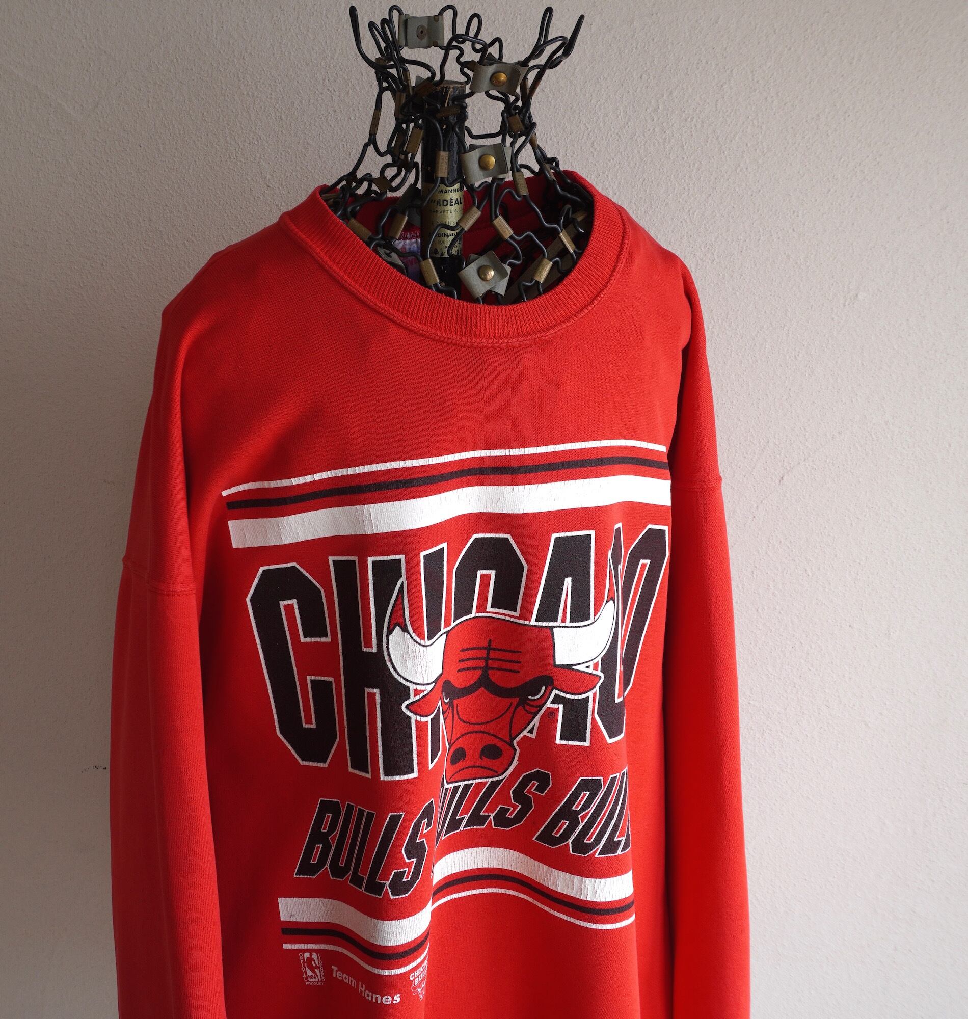 1990's USA製 [Hanes] NBA "CHICAGO BULLS" プリントスウェット レッド 表記(men's XL) シカゴ・ブルズ ヴィンテージ