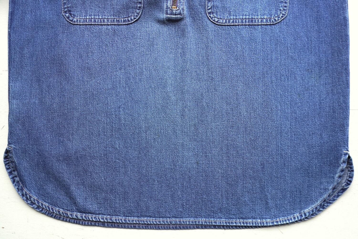 チンストラップやチェーン&リングジッパーのディテールが可愛い、ハーフジッププルオーバーデニムシャツ。