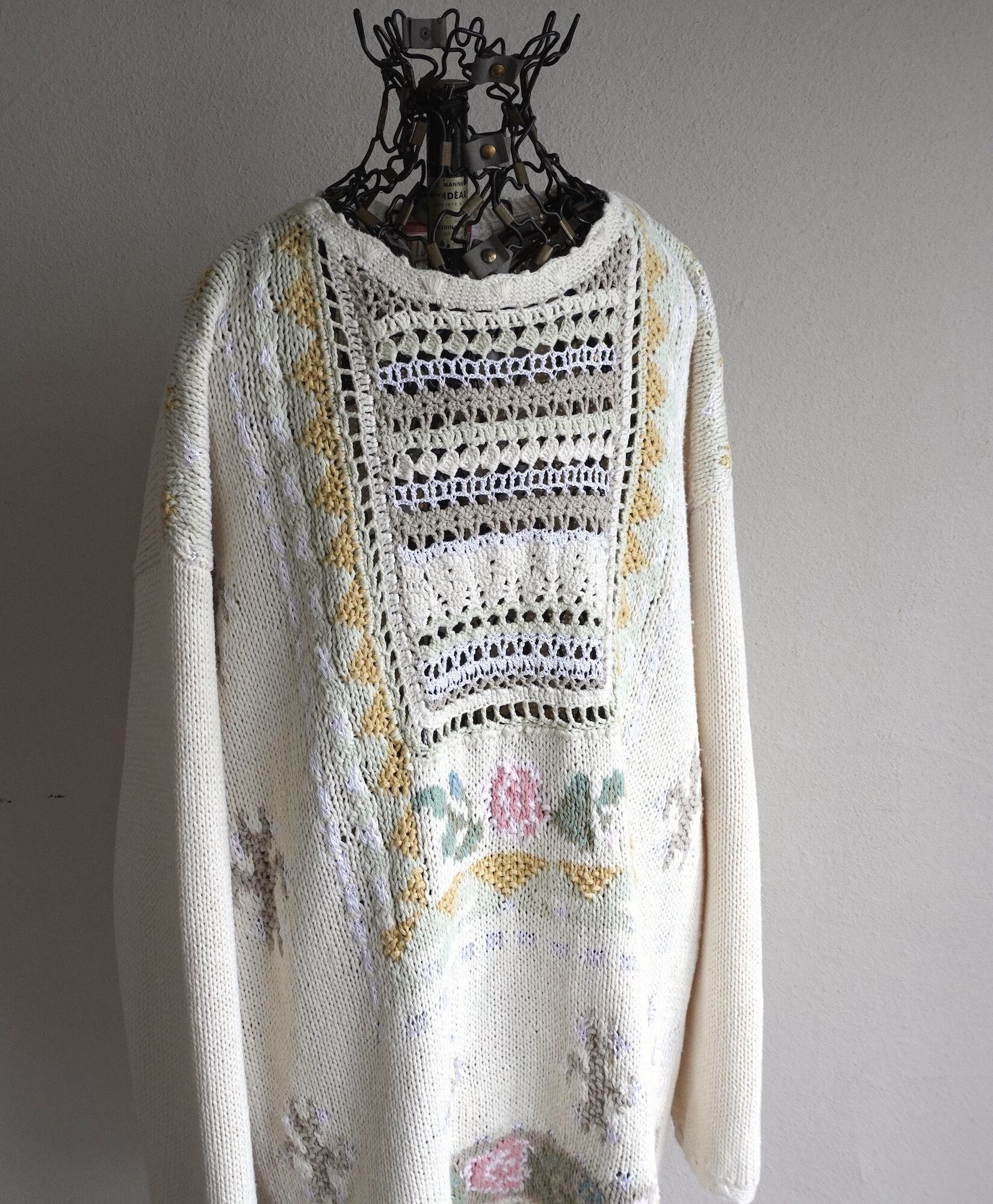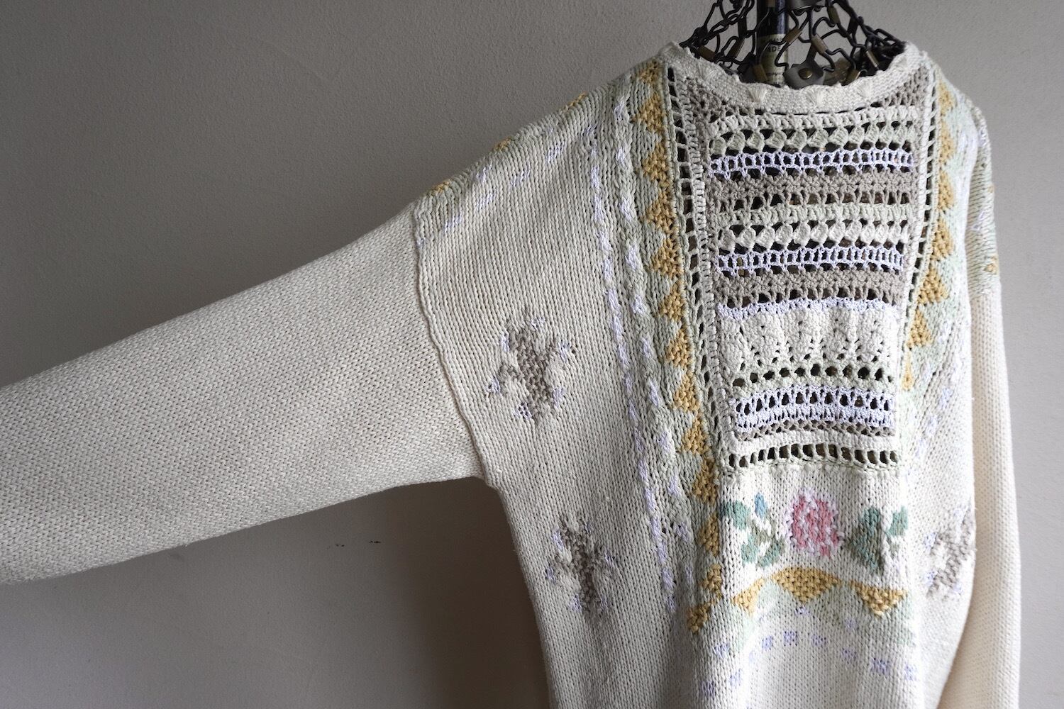 1990's [CRISTINA] ラミー×コットン×レーヨン クロシェニットセーター セミロング アイボリー 表記(women's L) 鉤針編み ヴィンテージ | MAGNOLIA WEBSTORE