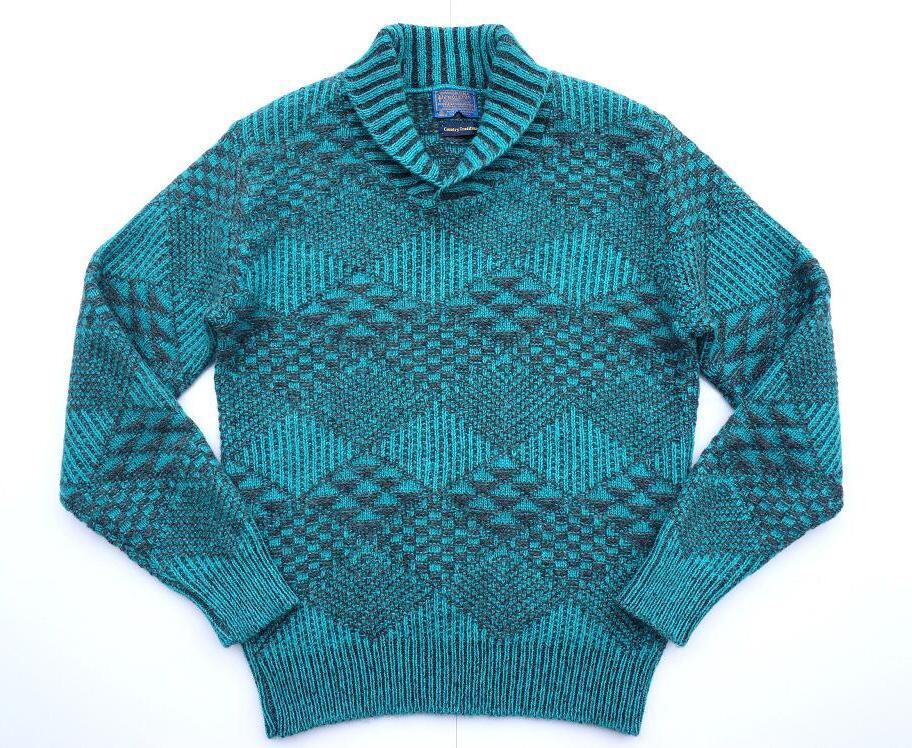 1970’s USA製 [PENDLETON] ショールカラー ニットセーター エメラルド×チャコール 表記(L) ペンドルトン