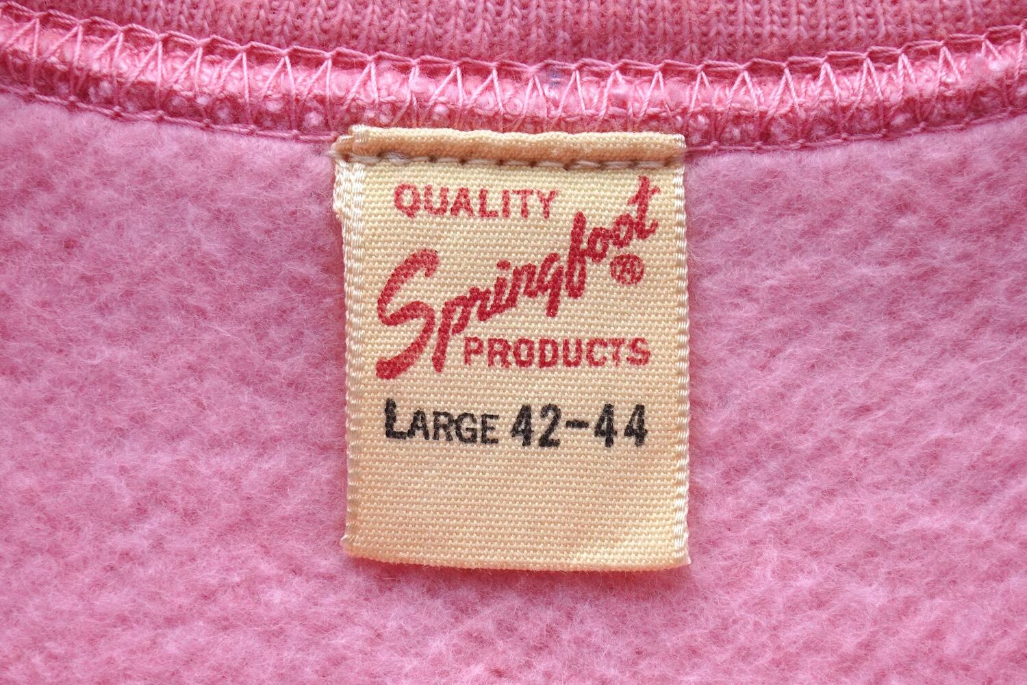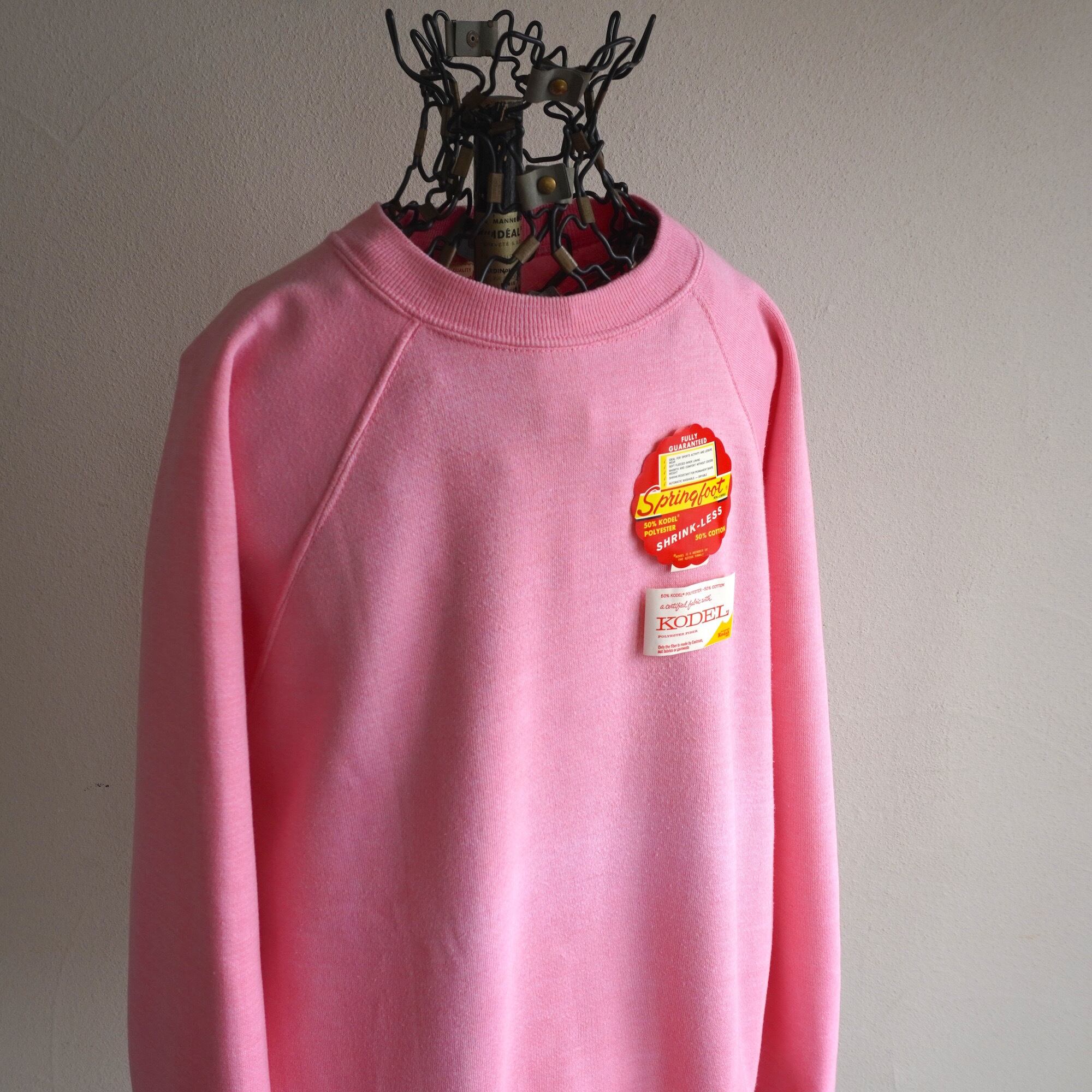 1960's [Springfoot] 長リブ ラグランスリーブ クルーネックスウェット 無地 ピンク 表記(men's L) フラッシャー付 ワンウォッシュ ヴィンテージ
