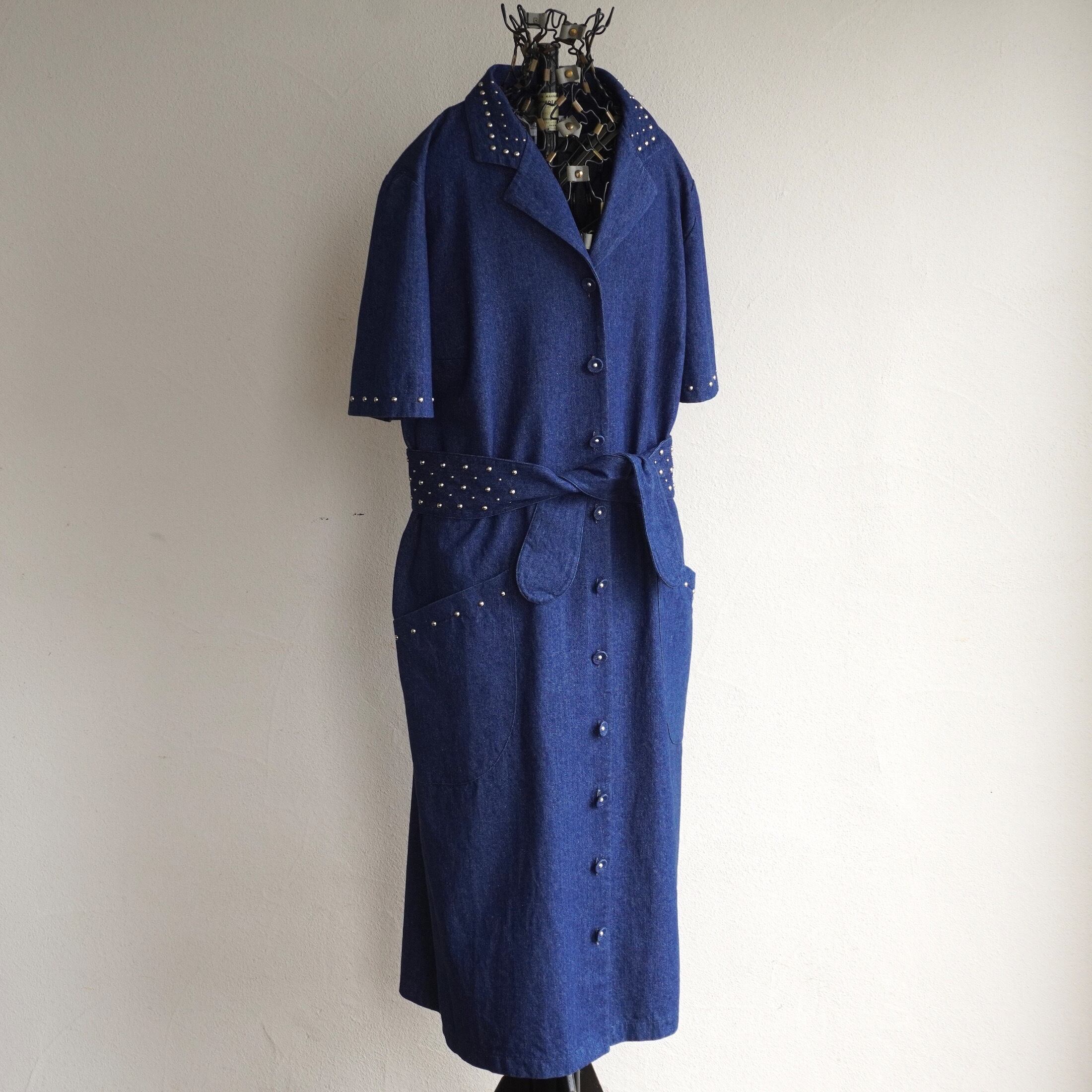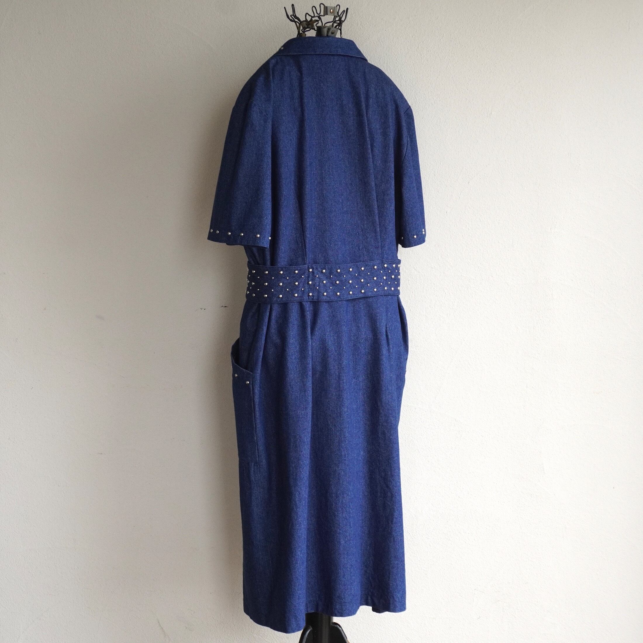 1990's FRANCE製 [eva Negri] スタッズデザイン S/S デニムドレス インディゴ 実寸(women's M程度) ワンピース ヴィンテージ