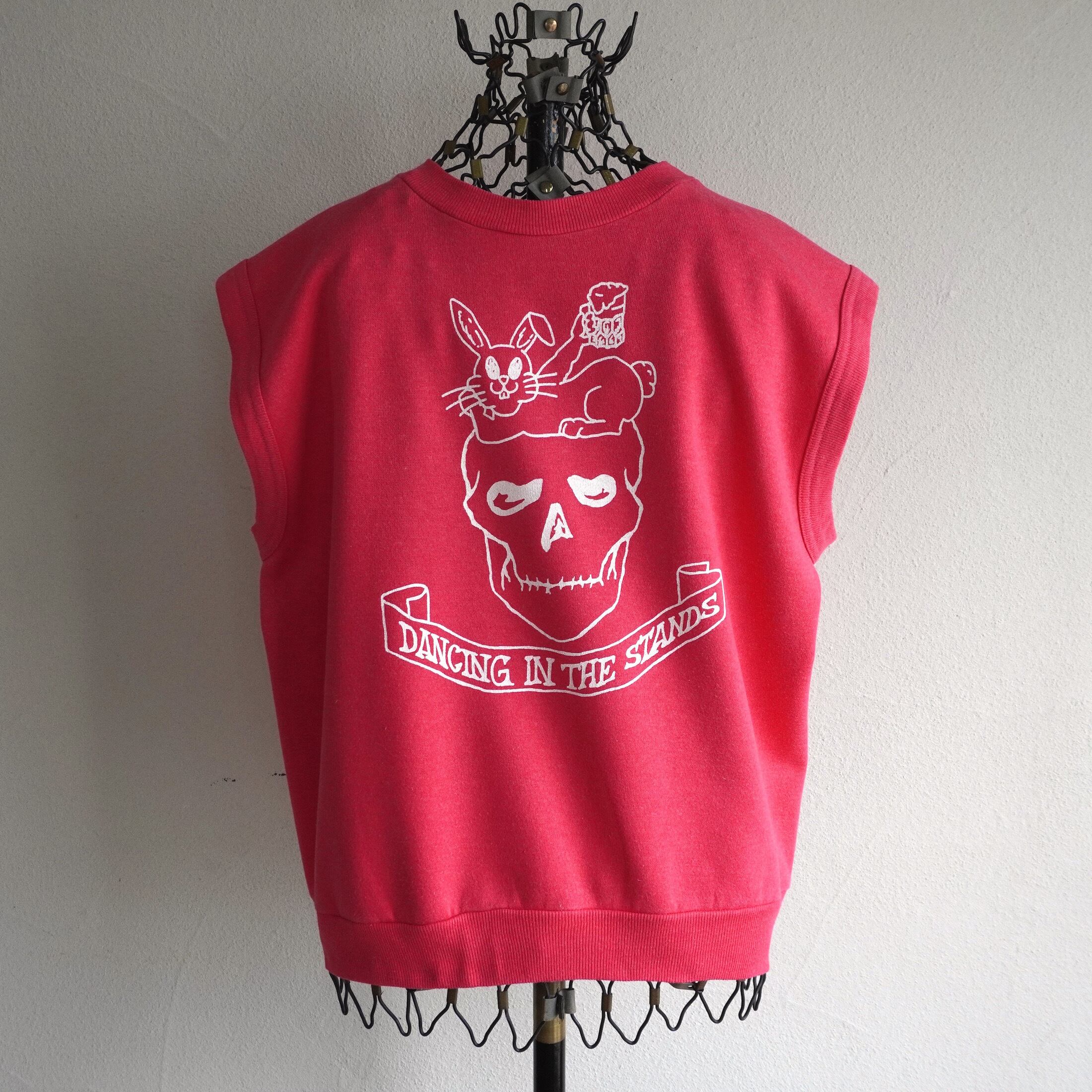 スカル&バニー&ビアマグの両面プリントがノリの良い、スリーブレススウェット。