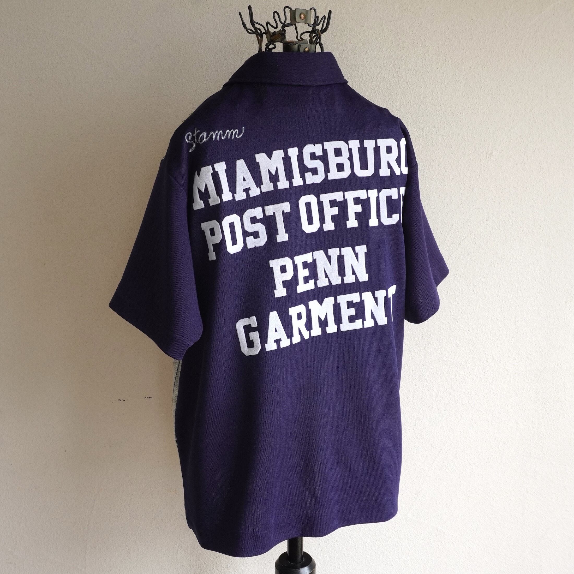 1970's USA製 [King Louie] ピンストライプ切り替え S/S ボーリングシャツ ネイビー×ライトグレー 表記(men's M) フェルトレタード ヴィンテージ