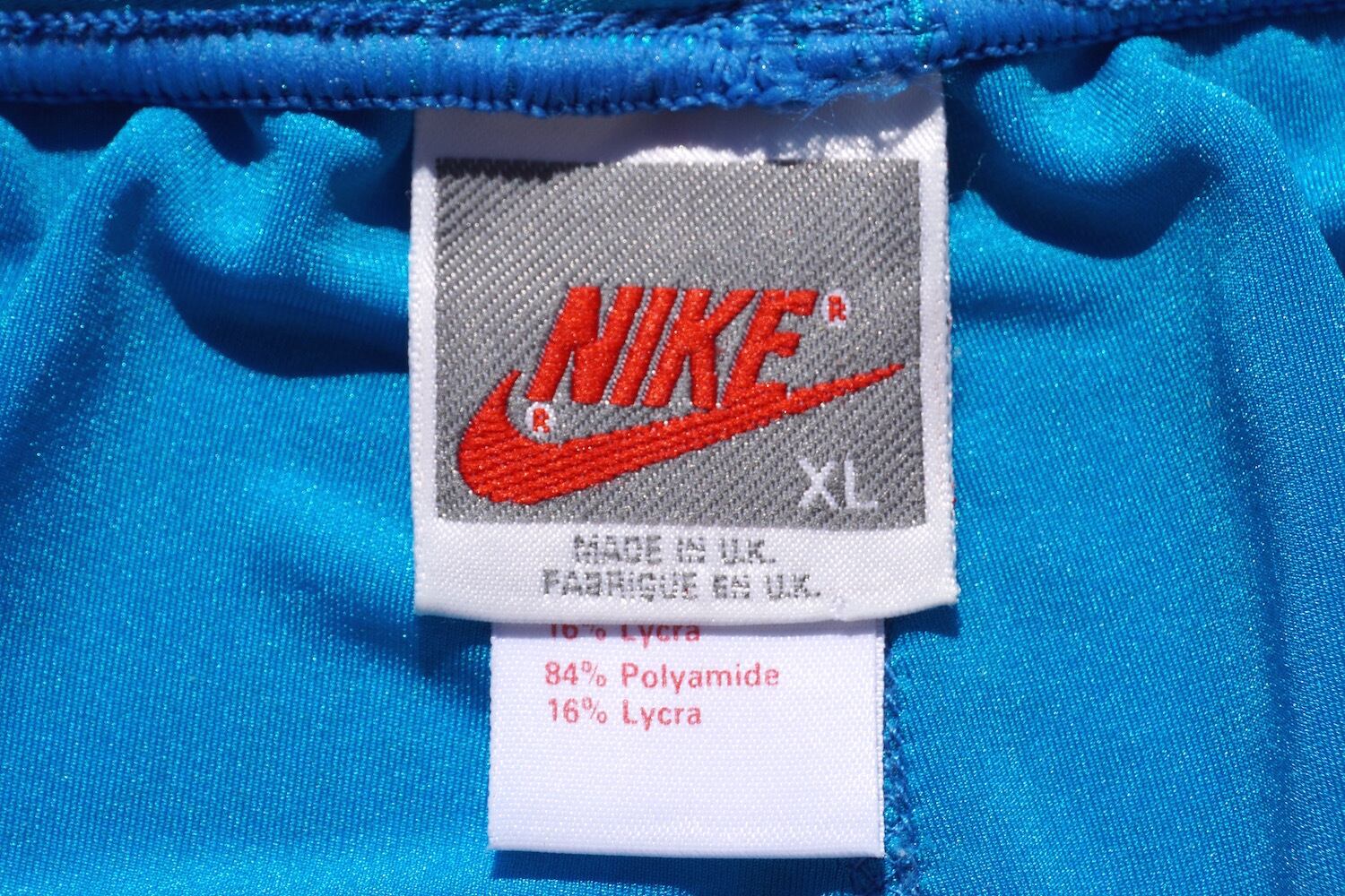 1990's UK製 [NIKE] ジョッパーズ型 サイクルジャージーパンツ ターコイズ×パープル×ライトグレー 表記(men's XL) シルバータグ 銀タグ ナイキ ヴィンテージ