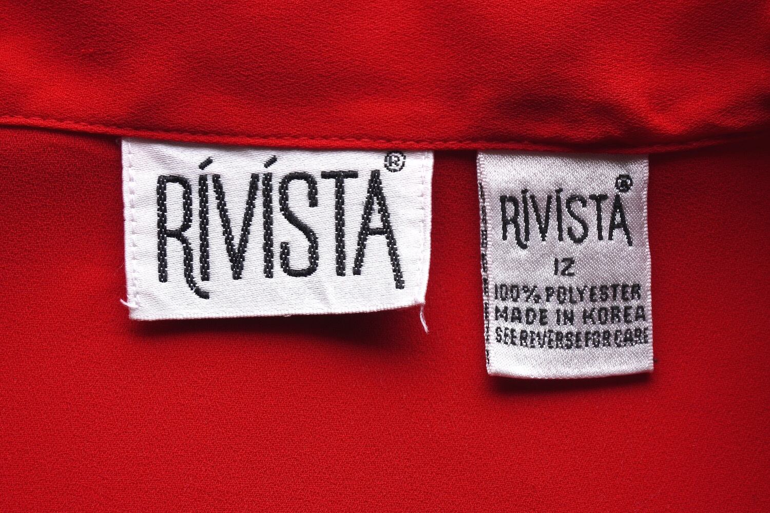 1990's [RIVISTA] オープンカラー&ボックスシルエット L/S ポリエステルシャツブラウス レッド 実寸(women's L程度) プリーツ ヴィンテージ