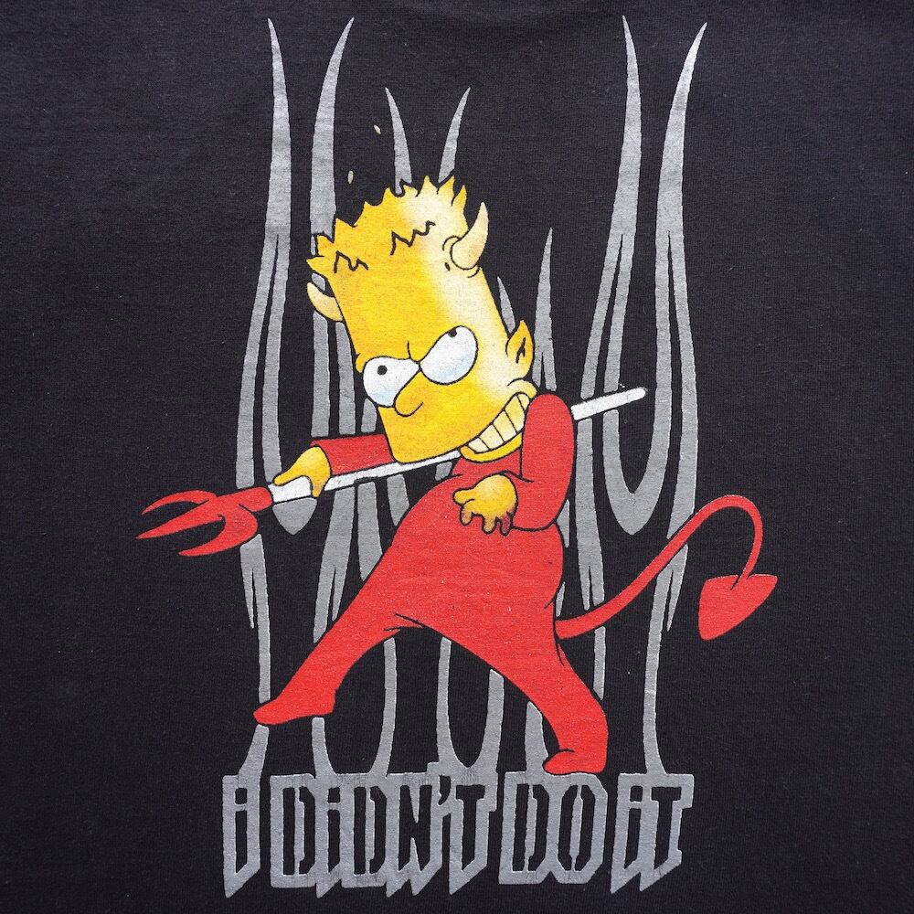 2000's MEXICO製 [THE SIMPSONS] "i DIDN'T DO iT" バート・シンプソン エンジェル/デビル 両面プリント Tシャツ ブラック 表記(women's S) フレイムパターン ファイヤーパターン シンプソンズ Y2K ヴィンテージ