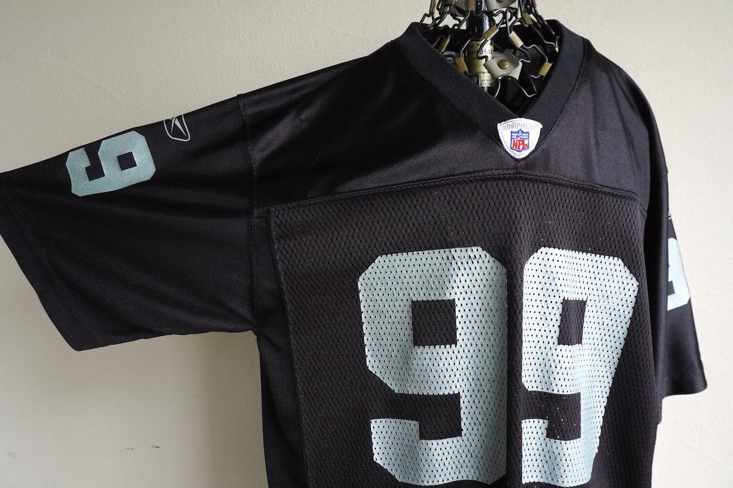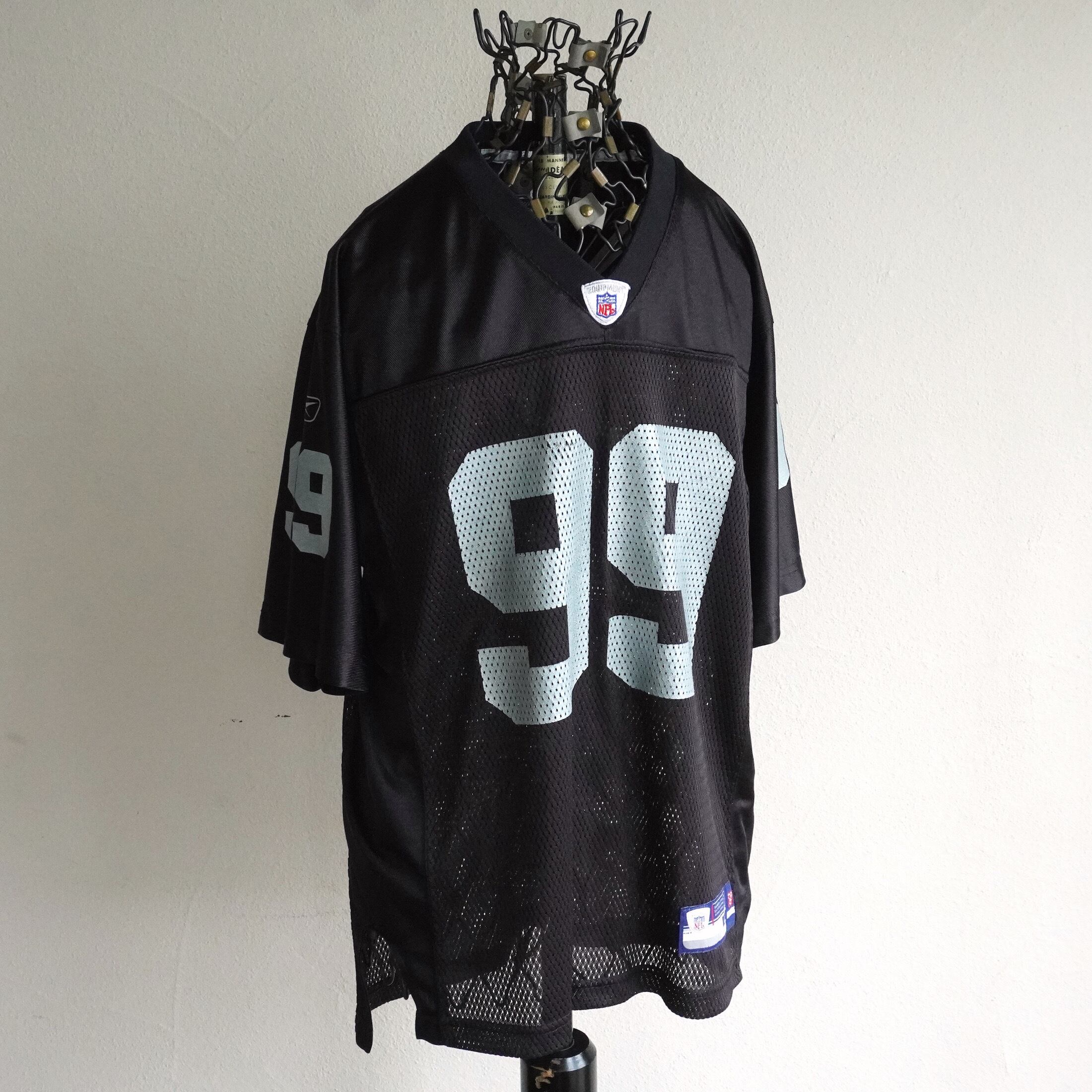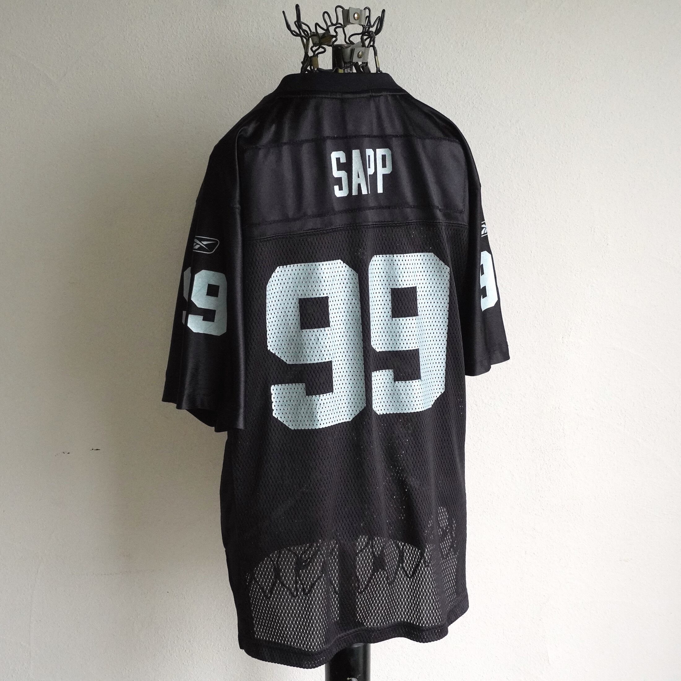 2000's [Reebok] NFL "RAIDERS" #99 SAPP メッシュフットボールゲームジャージー ブラック×ホワイト 実寸(men's XS〜S程度) ゾロ目ナンバリング レイダース ユニフォーム リーボック Y2K ヴィンテージ
