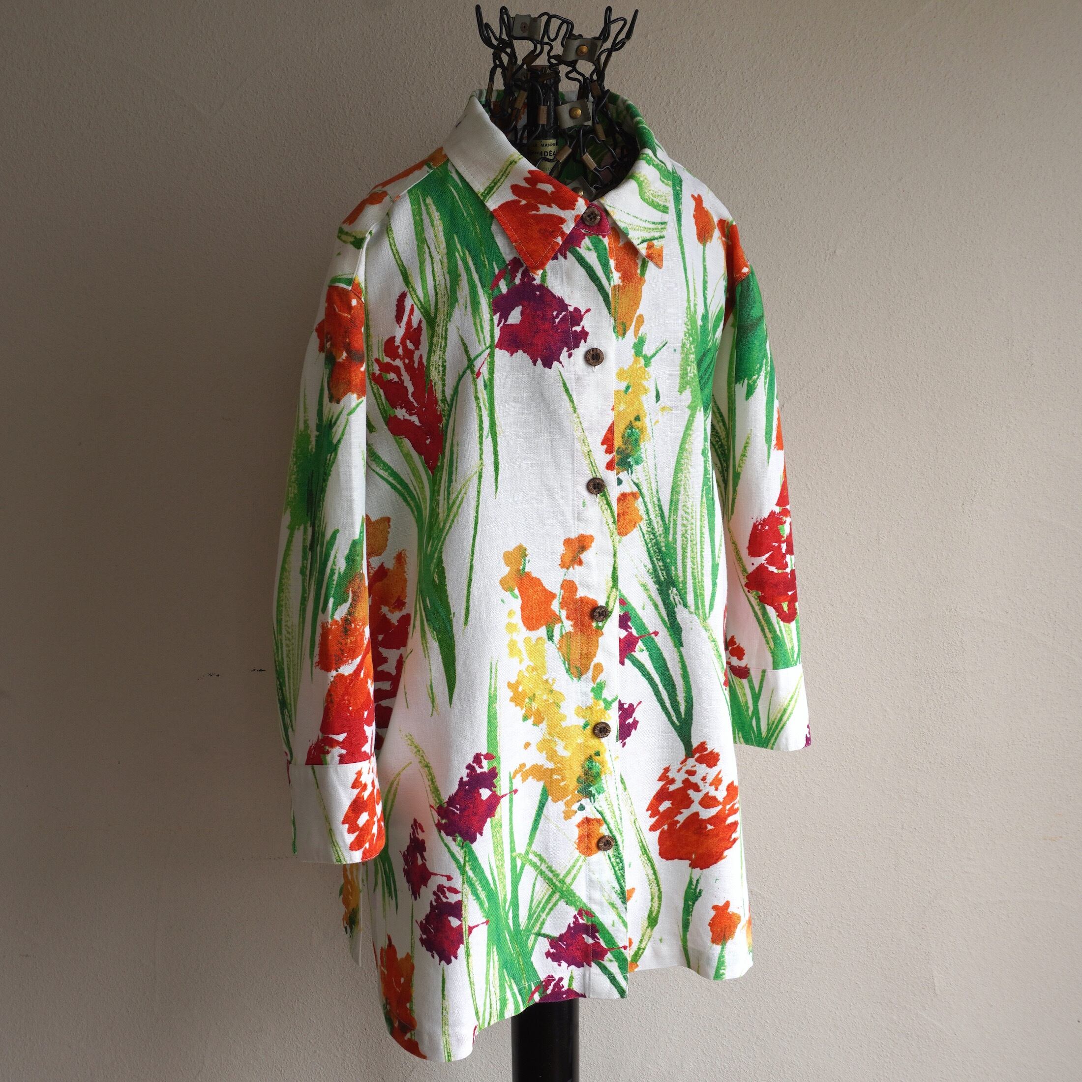 2000's [CHICO'S] 100%リネン フローラル/ボタニカルプリント 3/4スリーブ サマーシャツジャケット ホワイト 実寸(women's M〜L程度) フラワー 花柄 Y2K ヴィンテージ
