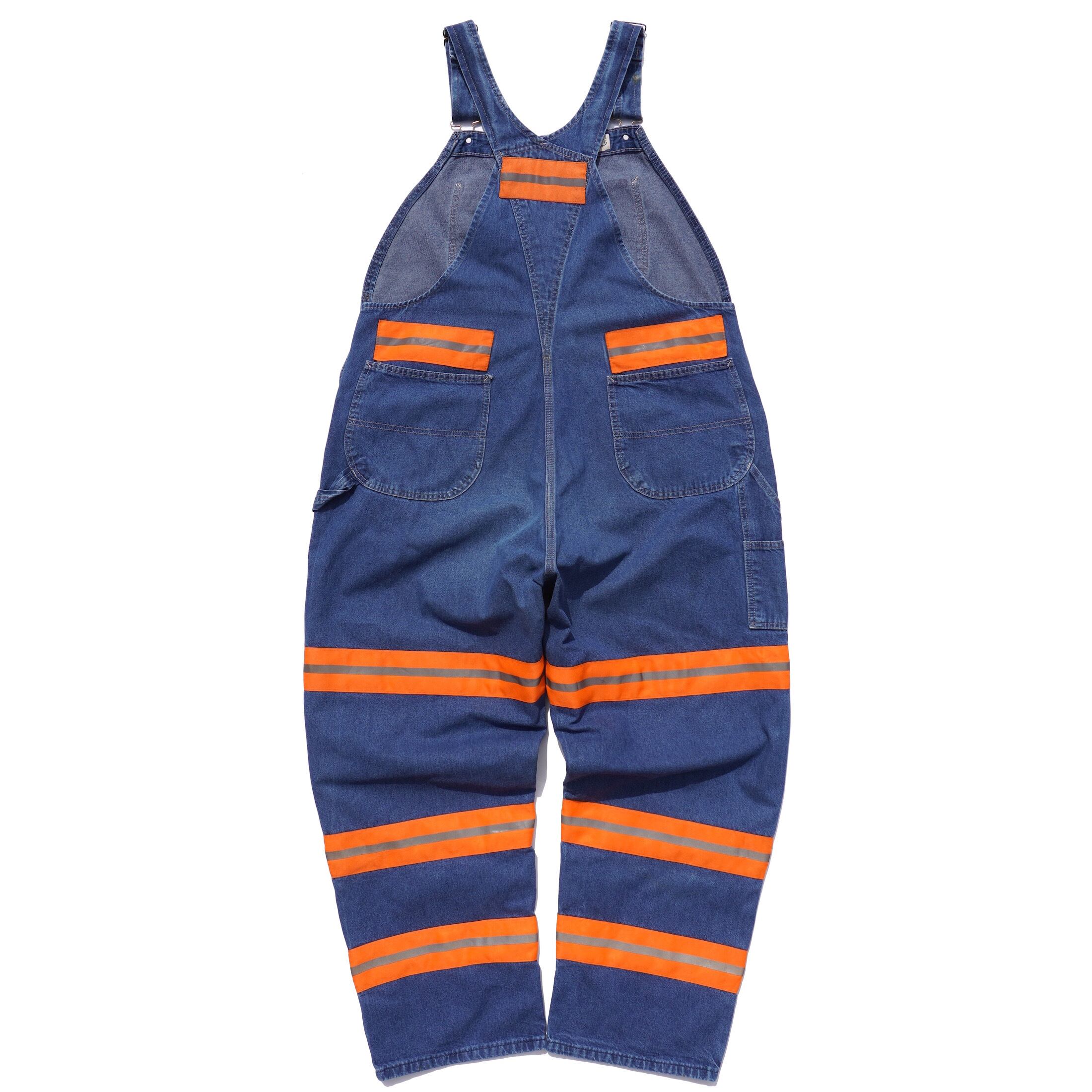 1990's〜2000's [aramark] ハイビジビリティ ネオンオレンジ×リフレクターテープ デニムオーバーオール 表記(men's 46×30) Y2K ヴィンテージ