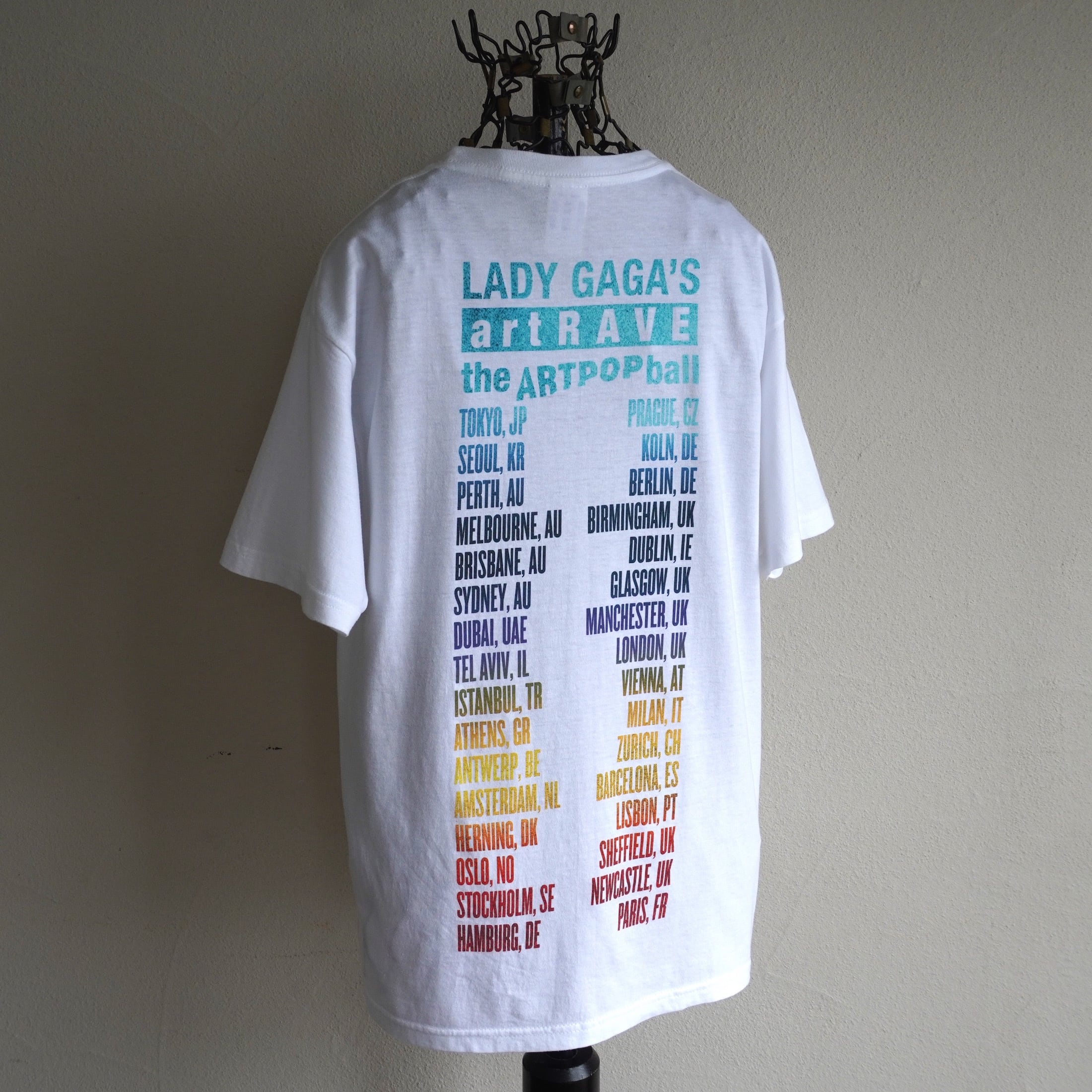 「Lady Gaga」3rdスタジオアルバム"ARTPOP"を引っ提げたコンサートツアー"artRAVE: the ARTPOP ball"のプリントTシャツ。