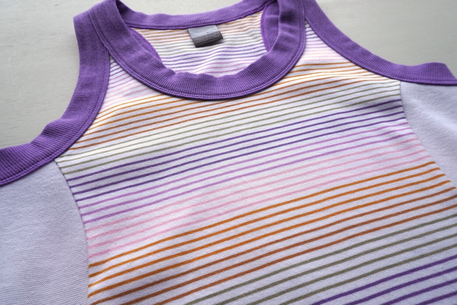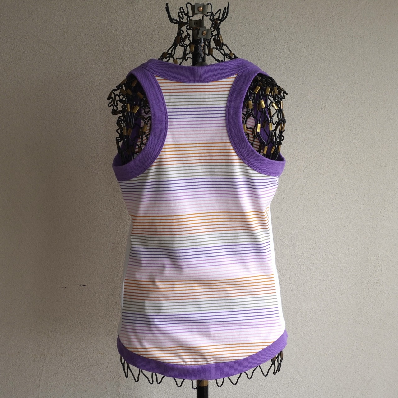 2000's [NIKE] ボーダー柄 コットンタンクトップ ホワイト×パープル 表記(women's L) Y2K ヴィンテージ ナイキ
