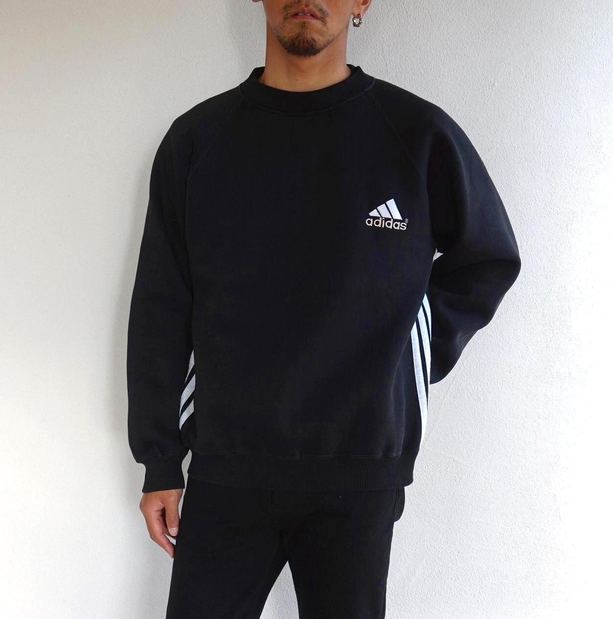 1990’s CANADA製 [adidas] エキップメントロゴ&3ライン ラグランスリーブスウェット 裏起毛 ブラック 表記(S) アディダス