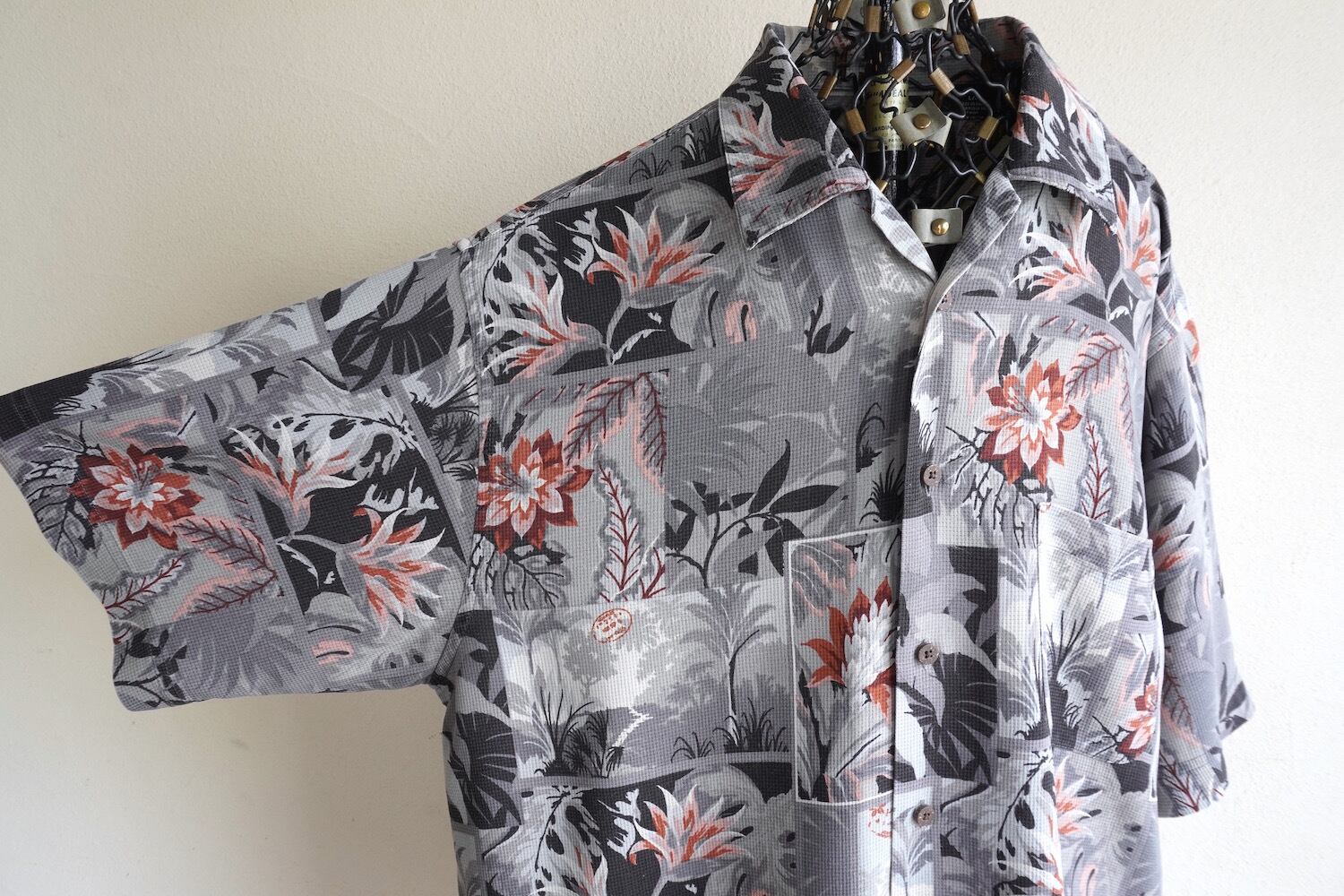 2000's〜 [haggar] 100%シルク ボタニカル/フローラル柄 S/S リゾートシャツ オープンカラー ボックスシルエット グレー 表記(men's L) ハワイアン アロハ Y2K