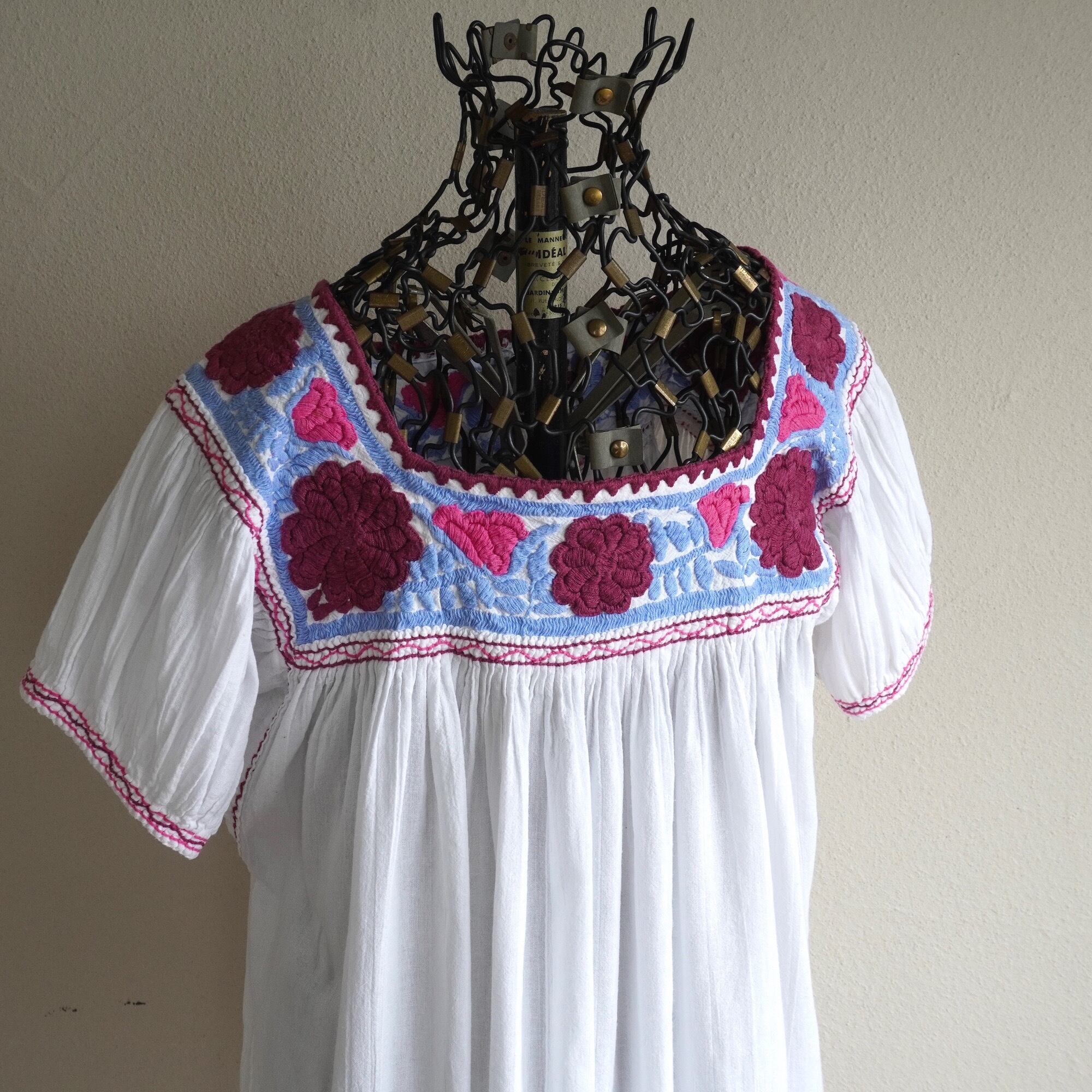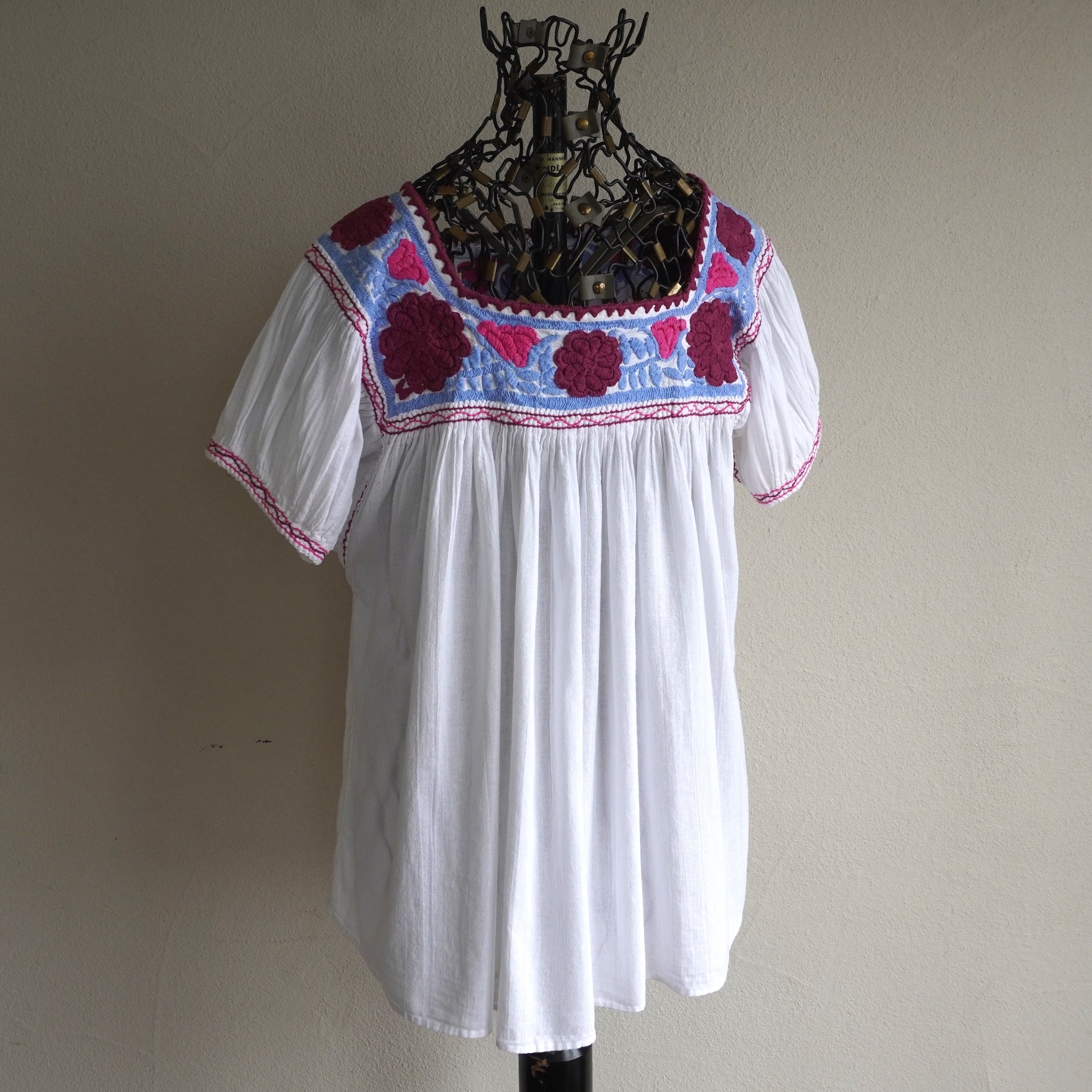 明るいホワイトにヨークの刺繍が映える、メキシカンチュニック。