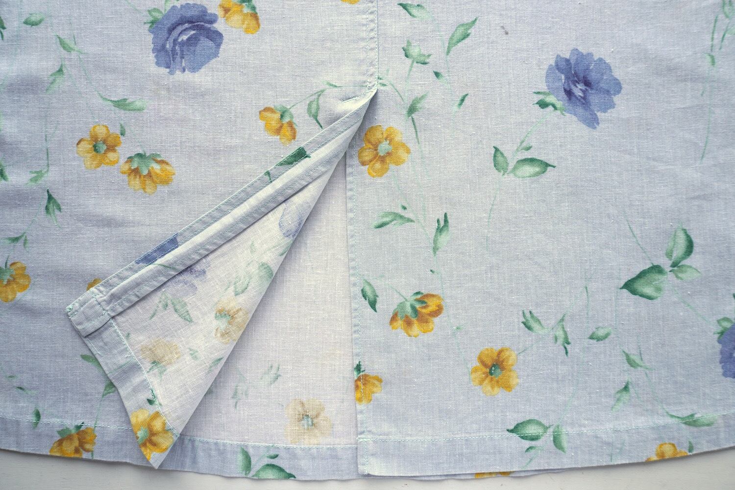 1990's〜 [Liz claiborne] リネン×レーヨン フローラルプリント Aライン ロングスカート ライトブルー 表記(women's 6) ヴィンテージ