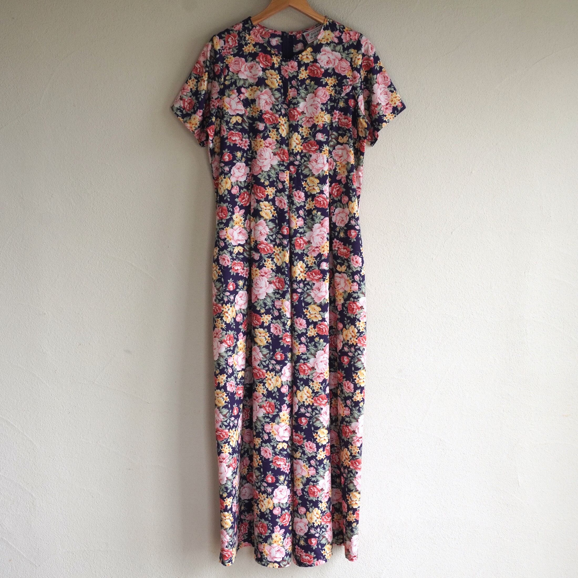1990's USA製 [Girls Will Be Girls] フローラルプリント ワイドパンツシルエット ジャンプスーツ ネイビー 実寸(women's L程度) オールインワン ヴィンテージ | MAGNOLIA WEBSTORE