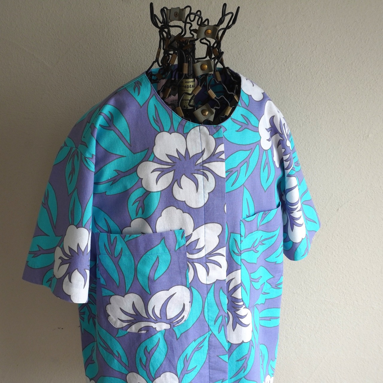 1980's〜90's [Jadyn Smith] フローラル&ボタニカルプリント S/S カラーレスシャツ ブルー系 表記(women's 10) リゾート ハワイアン アロハ ヴィンテージ | MAGNOLIA WEBSTORE